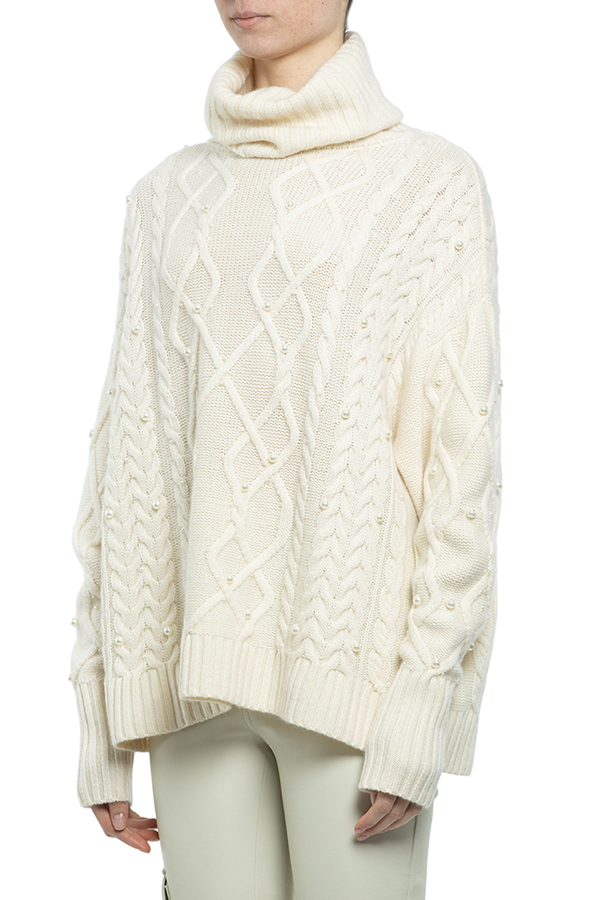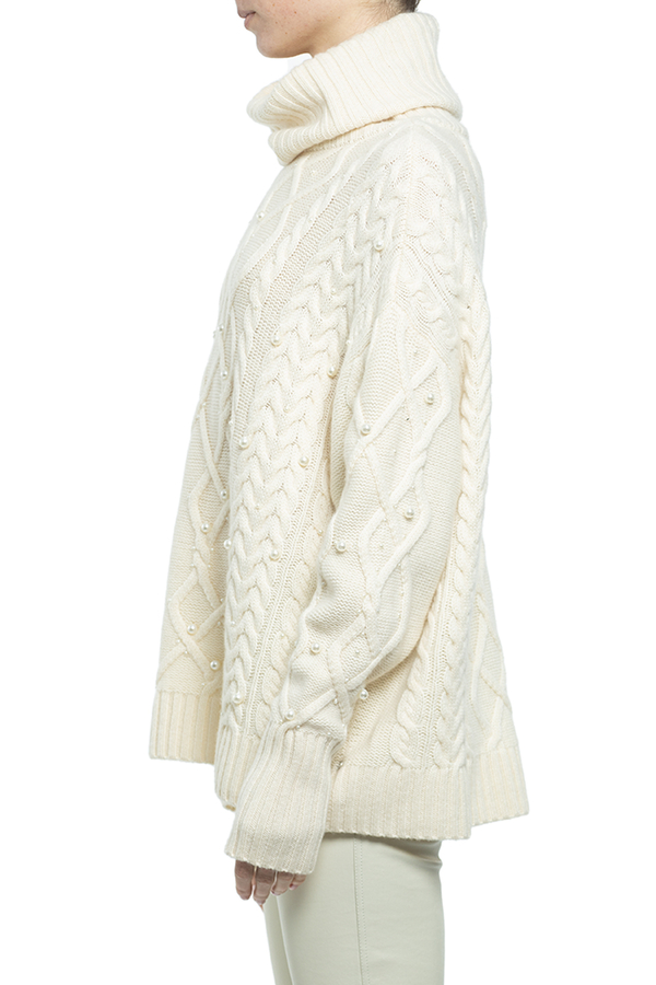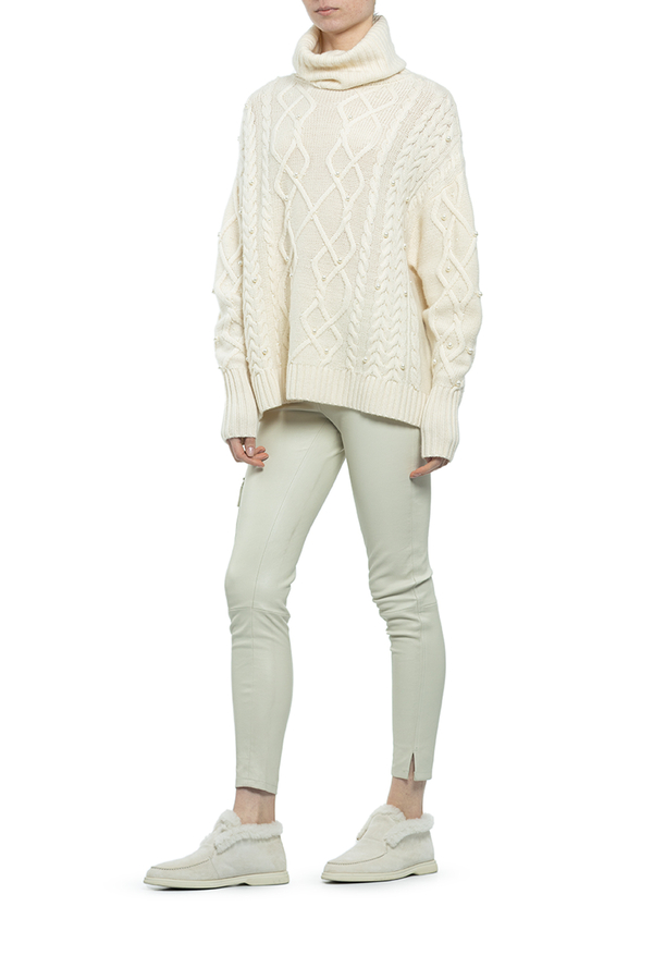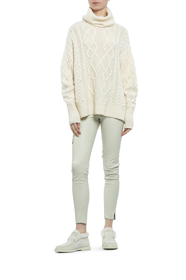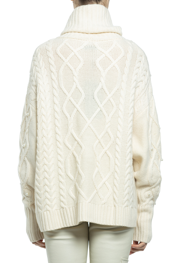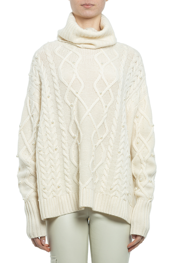 - Ажурний светр-гольф прикрашений намистинами.