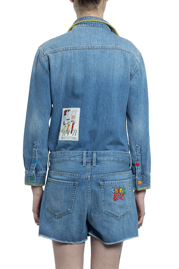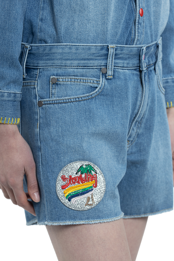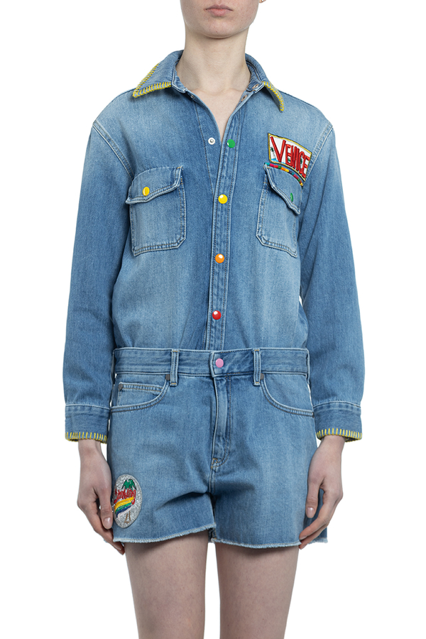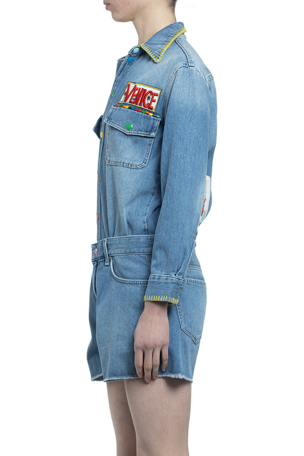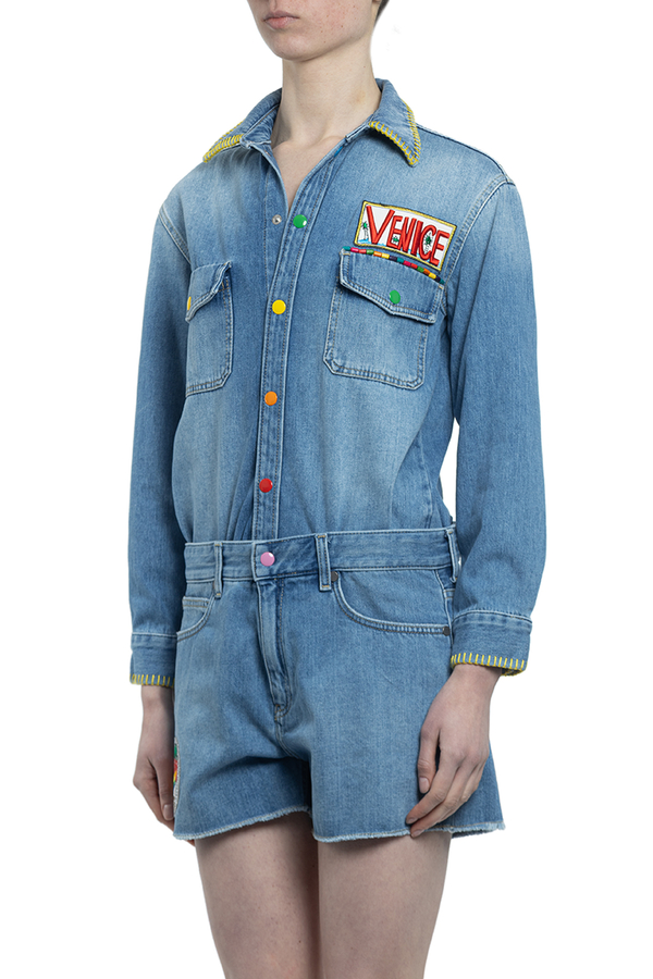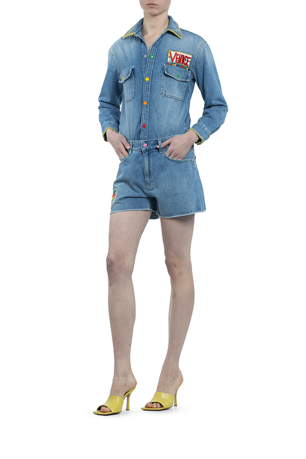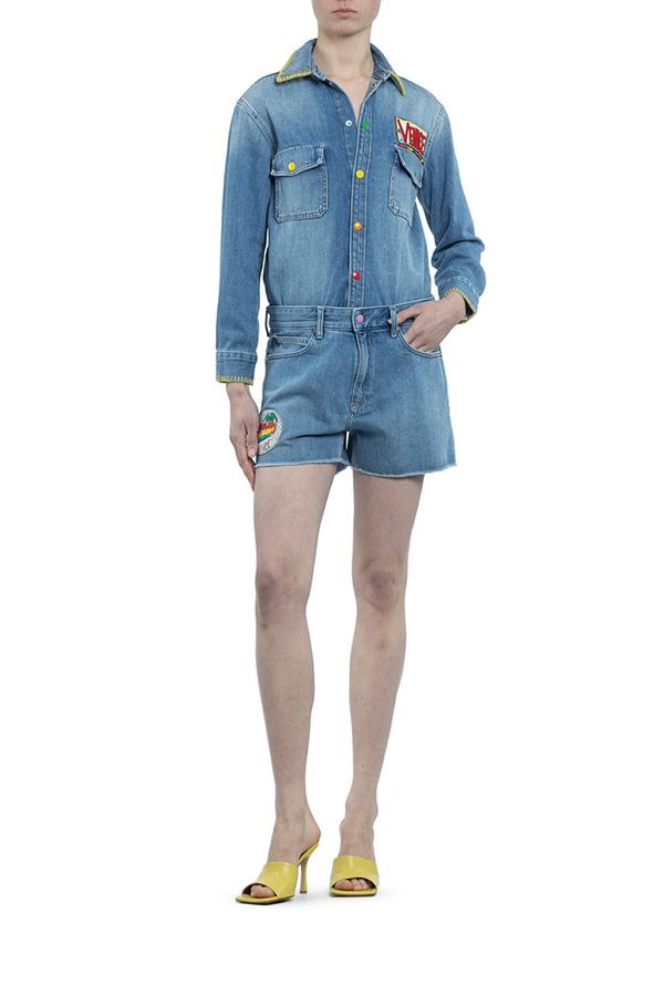 - Бавовняний комбінезон з шортами. Низ відстібається, на клопках.