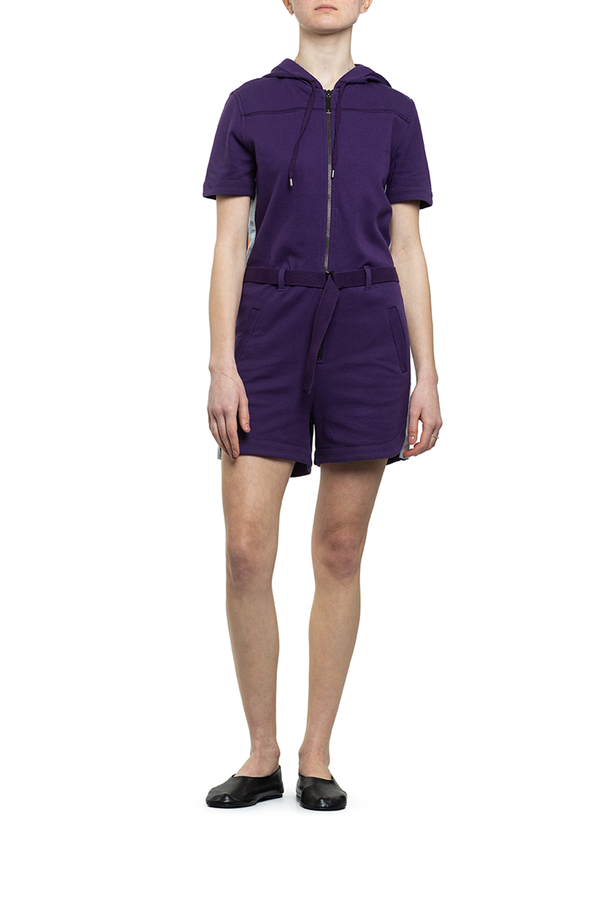- Комбінезон з суміши бавовни і кашеміру. Низ з шортами з контрастними лампасами. Верх з капюшоном.