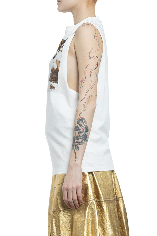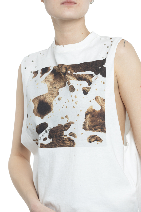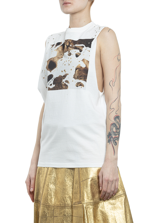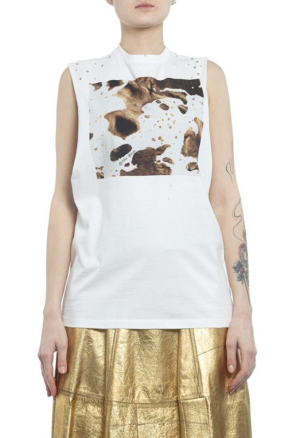 - Бавовняна футболка без рукавів з металевими заклепками і принтом в цятках.