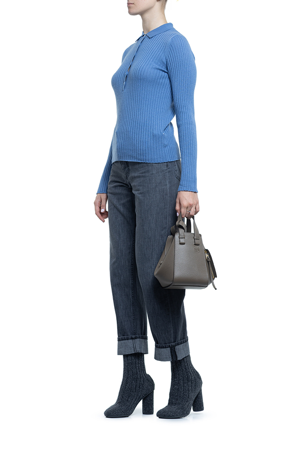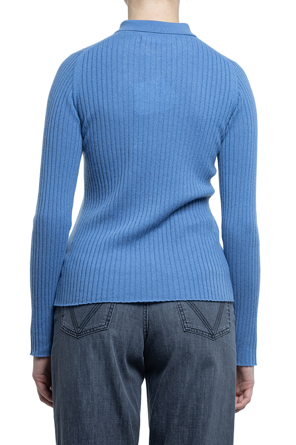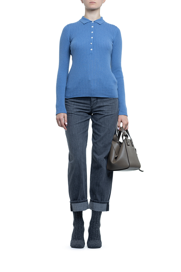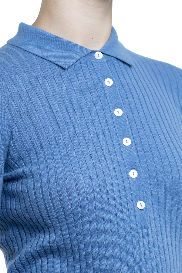 - Поло в рубчик с длинными рукавами, классический воротник, спереди планка с пуговицами