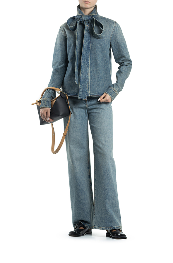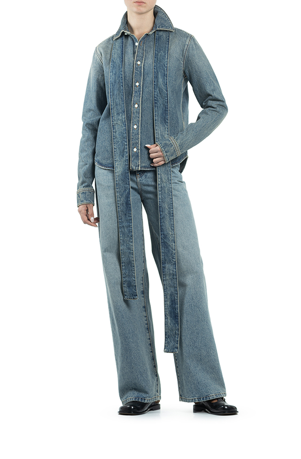 - Сорочка з довгими рукавами, класичний комір, знімний бант-лавальєр, заокруглений низ, застібка та манжети на гудзиках