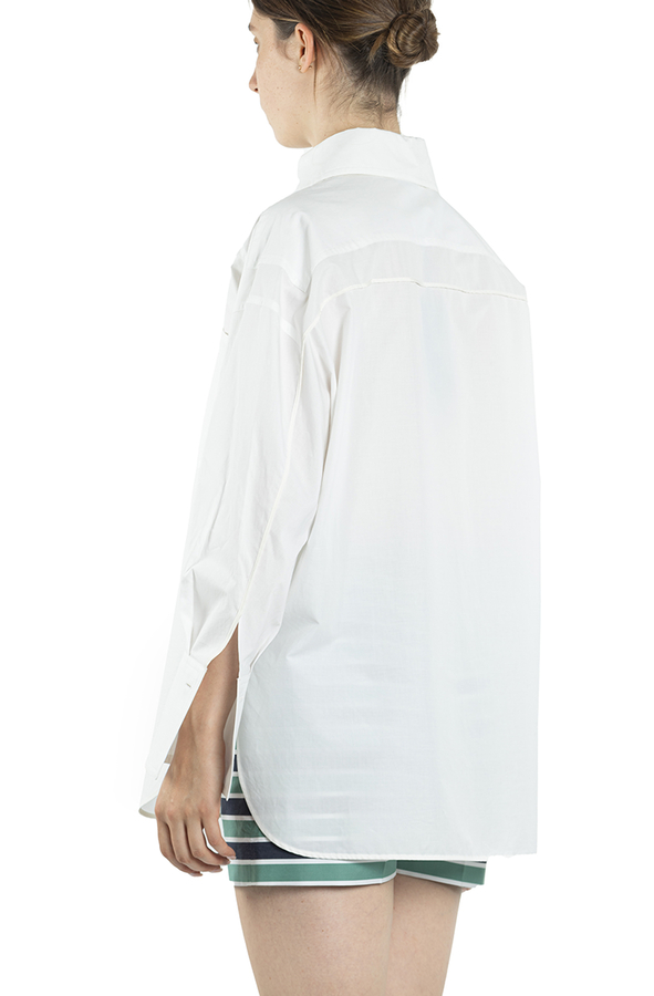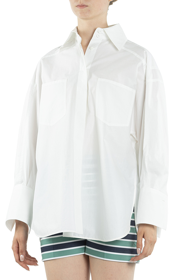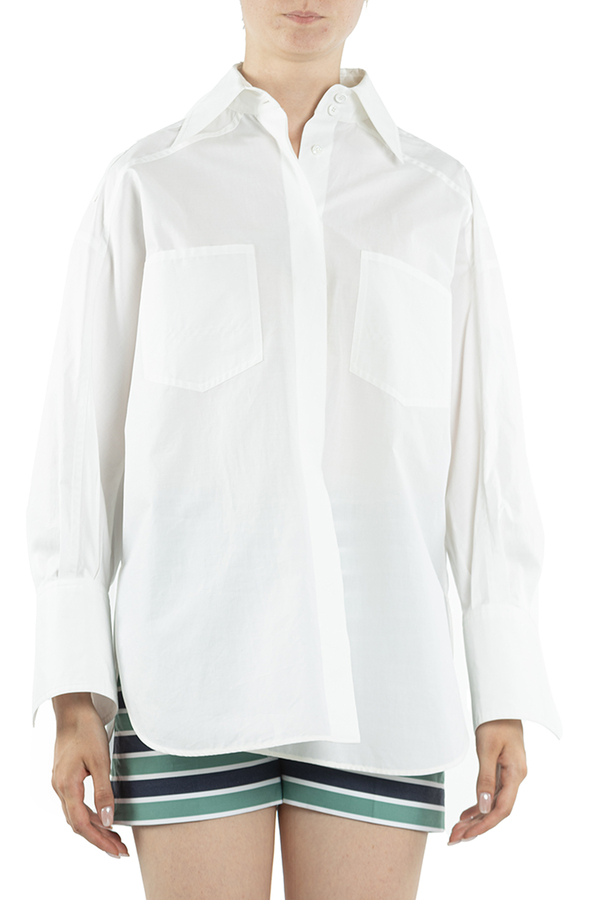 - Бавовняна сорочка с довгими рукавами. Накладні кишені на грудях, з запонками на манжетах.
