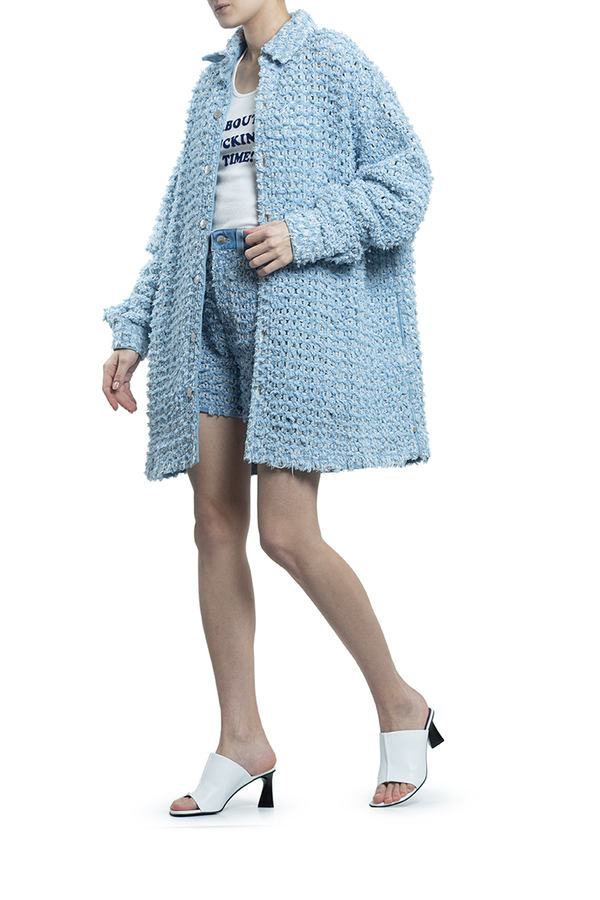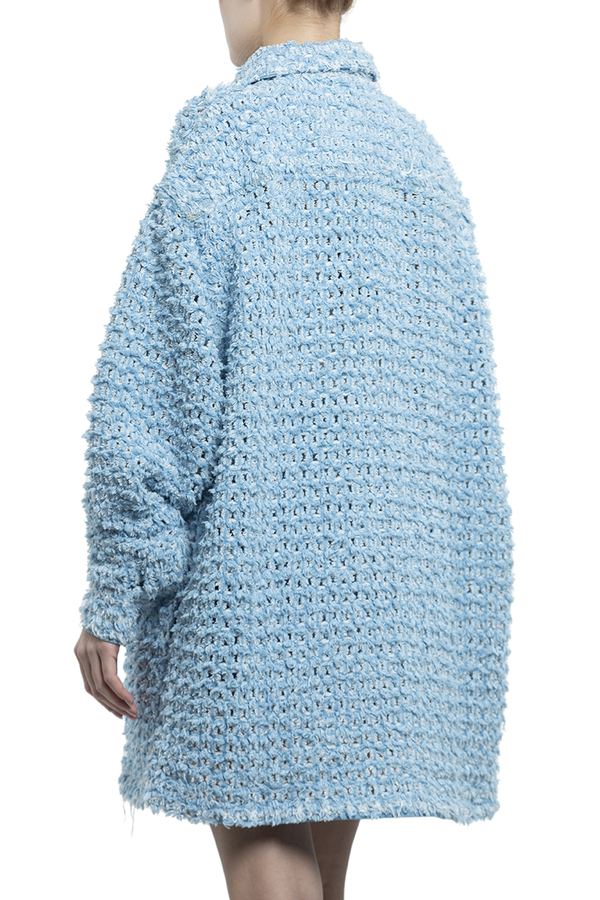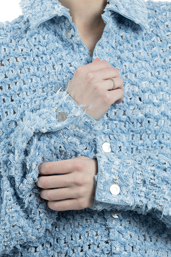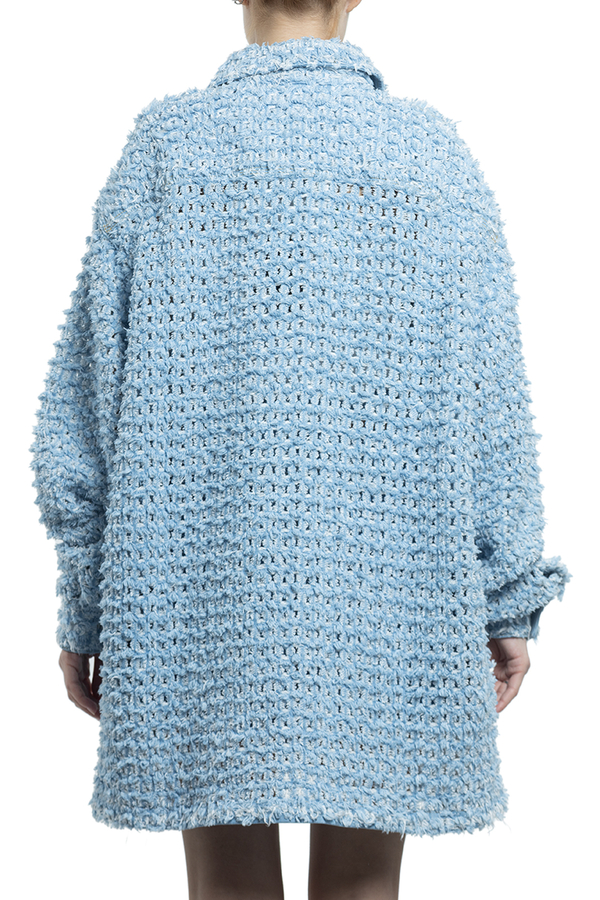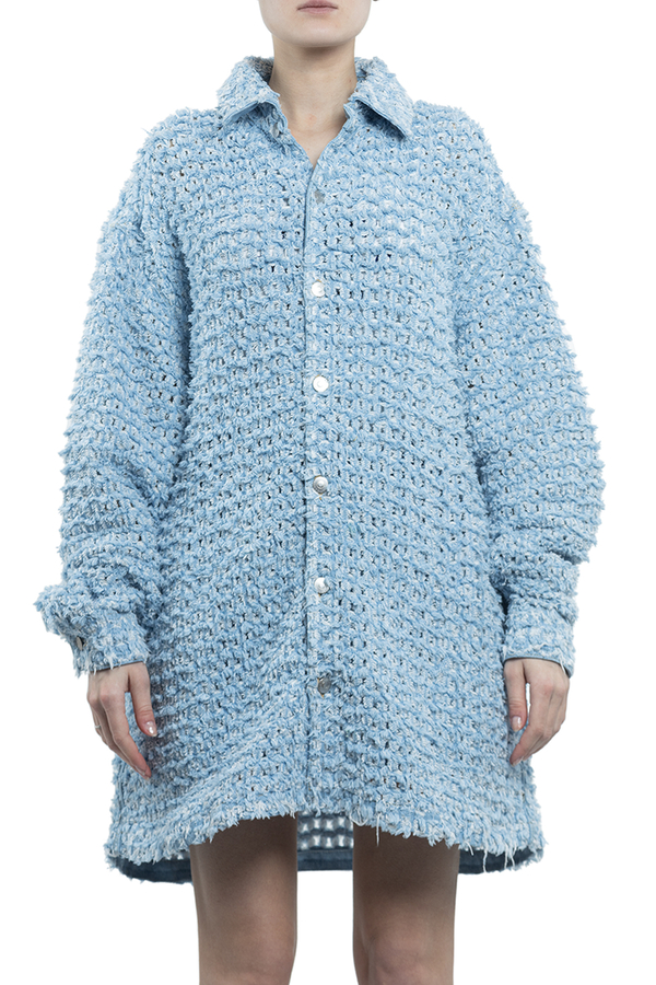 - Сорочка із букле, довгі рукави, класичний комір, застібка на гудзики спереду