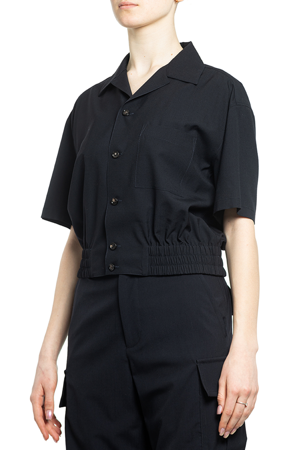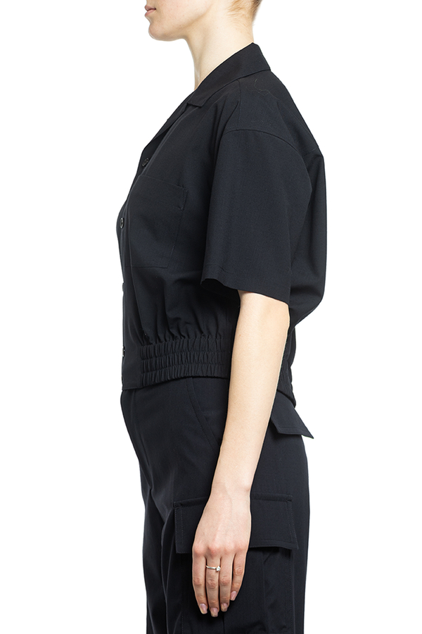 - Сорочка з короткими рукавами, застібка на гудзики, низ на резинці, одна нагрудна накладна кишеня