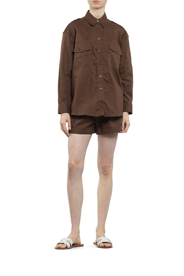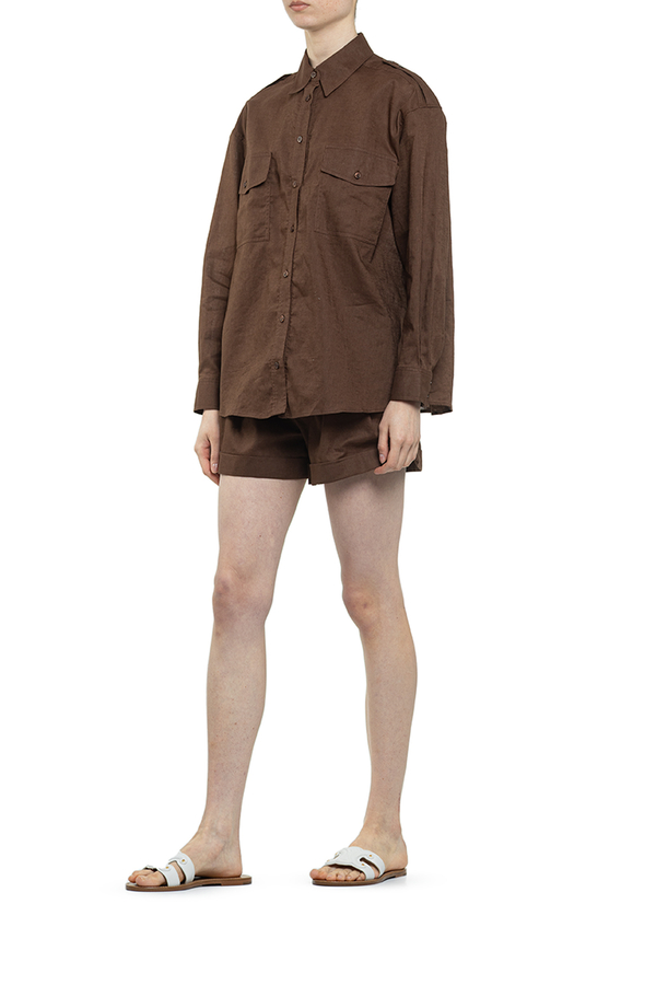 - Шорты с поясом, два скошенных врезных кармана по бокам, потайная застежка-молния спереди