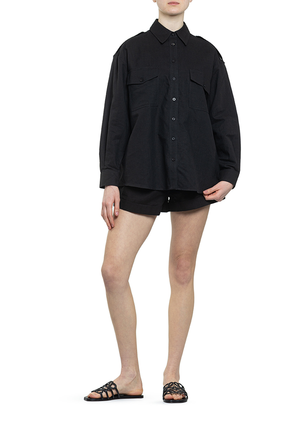 - Шорты с поясом, два скошенных врезных кармана по бокам, потайная застежка-молния спереди
