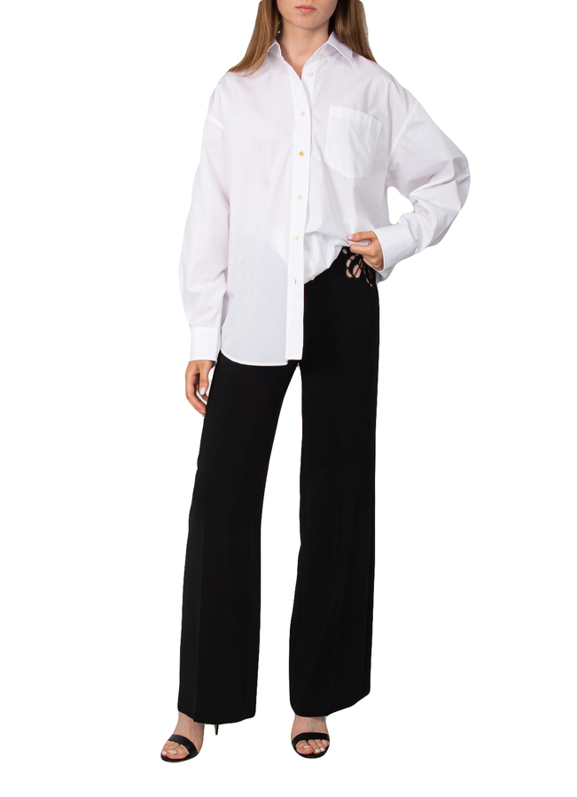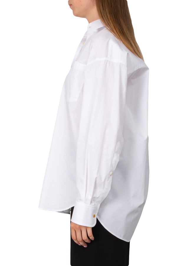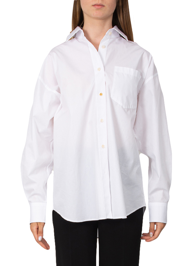 - Рубашка с длинными рукавами, классический воротник, манжеты и застежка спереди на пуговицы, одна пуговица с выгравированным логотипом, закругленный низ боков, на груди один накладной карман