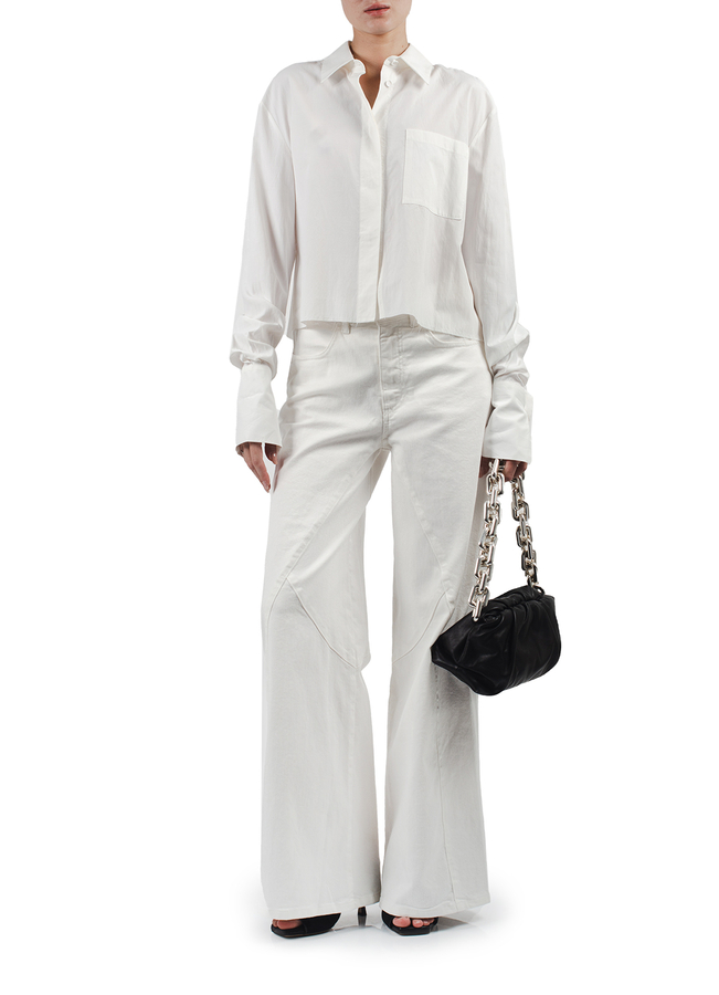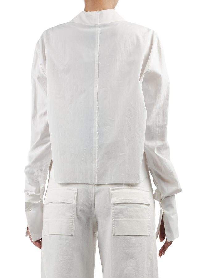 - Сорочка з довгими рукавами, спереду прихована застібка на гудзики, на грудях накладна кишеня, широкі манжети на гудзиках