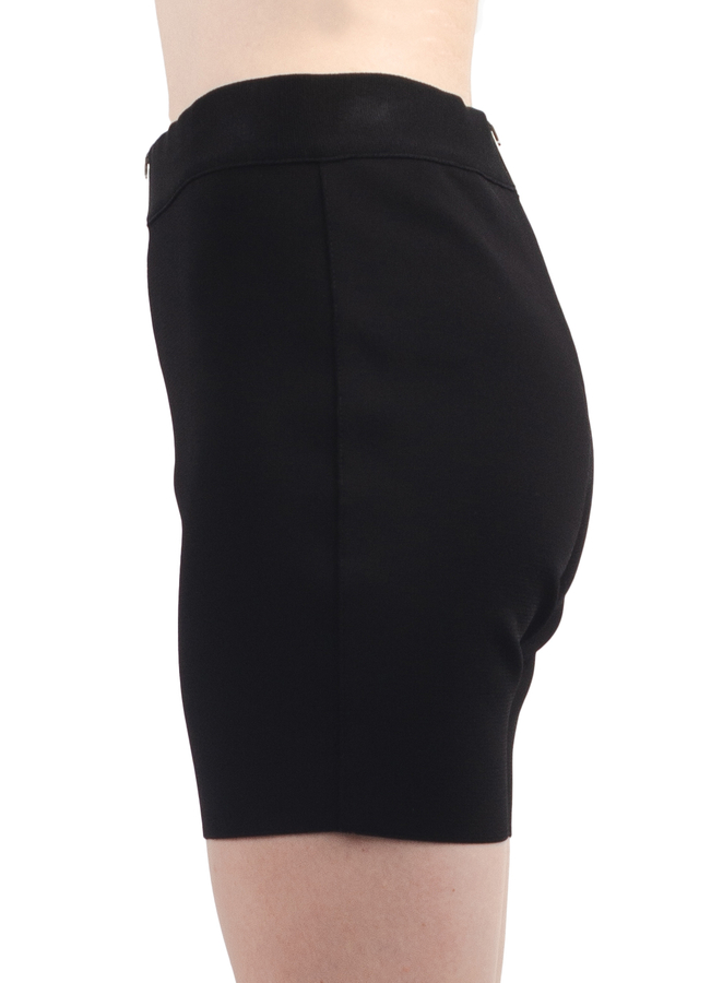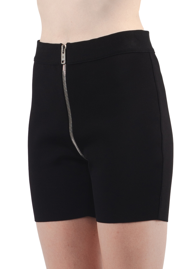 - Шорти короткі декоровані металевою блискавкою зпереду і ззаду. На поясі еластична тканина.