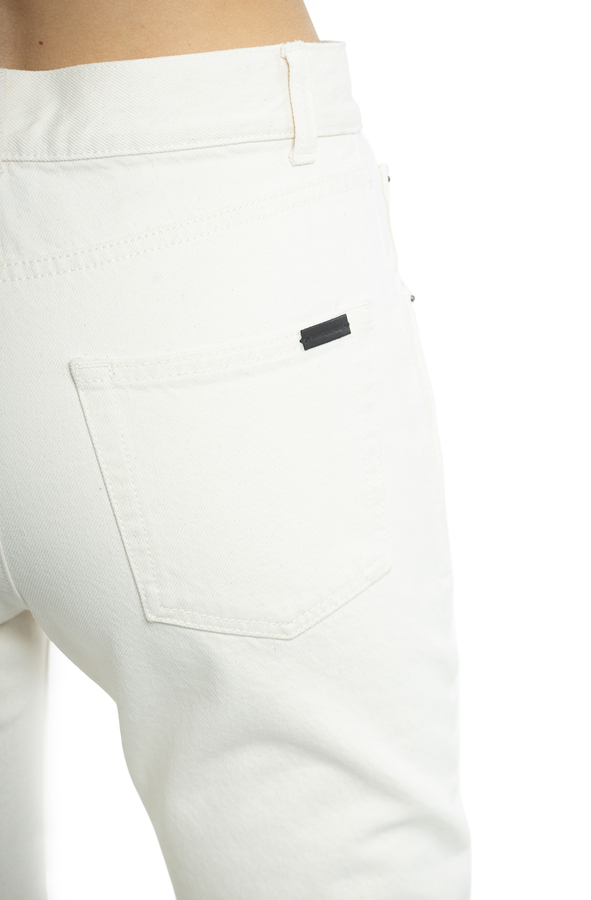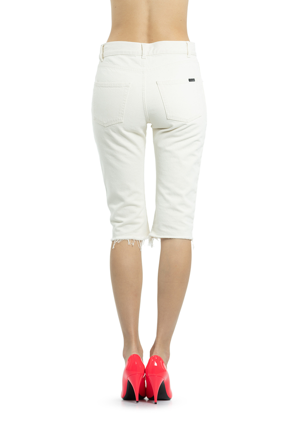 - Джинсові довгі шорти з високою талією. Застібка на блискавку і гудзик. П'ять накладних кишень. Нашивка з логотипом ззаду.