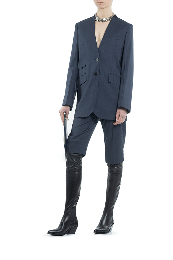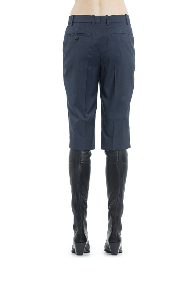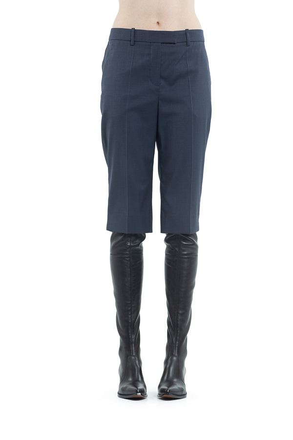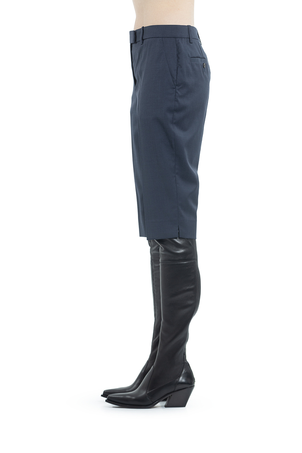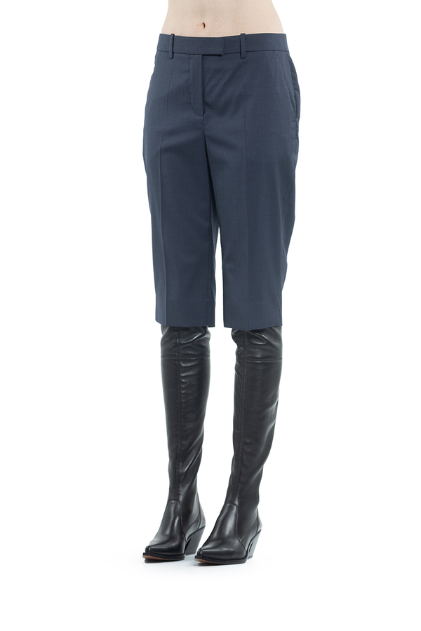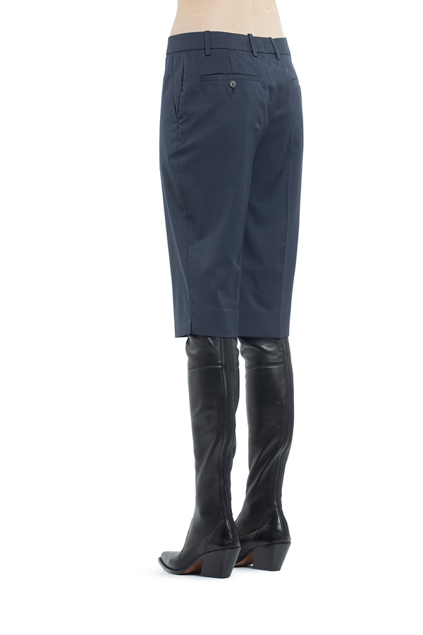 - Шорти довгі прямого крою. Петлі для ременя, застібка спереду, дві задні прорізні кишені на гудзиках
