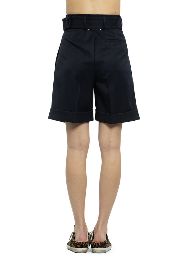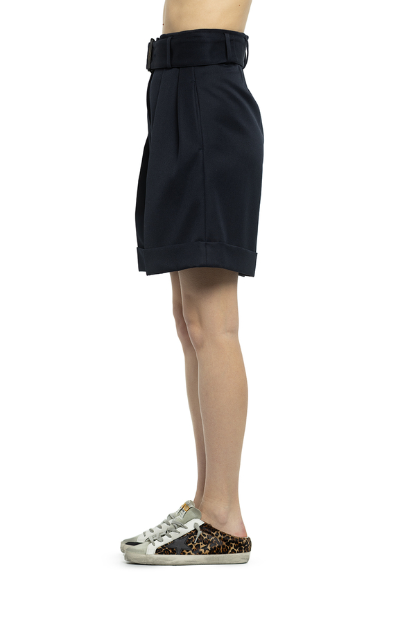 - Шорти з підворотами, широкий ремінь з люверсами, складки, дві врізні кишені по боках, одна накладна ззаду