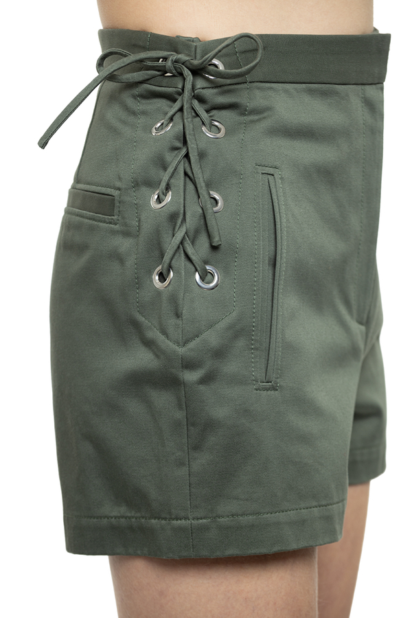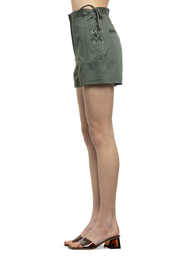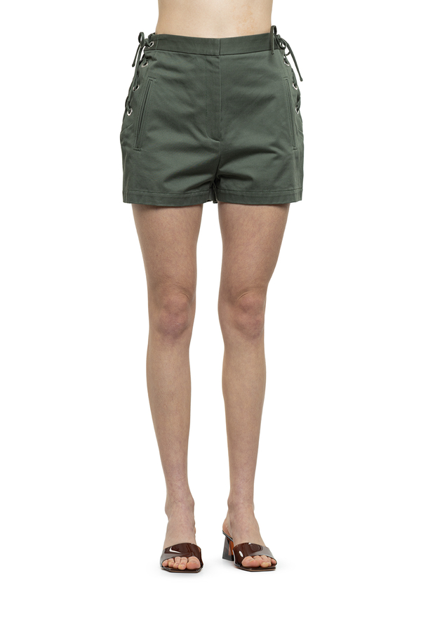 - Бавовняні шорти середньої довжини з оздобленням шнурівкою з боків.