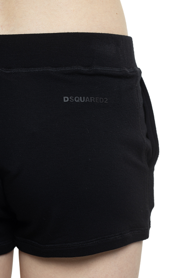 - Трикотажні міні-шорти на еластичному поясі. Дві врізні кишені спереду. Чорна аплікація ззаду.