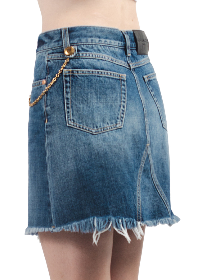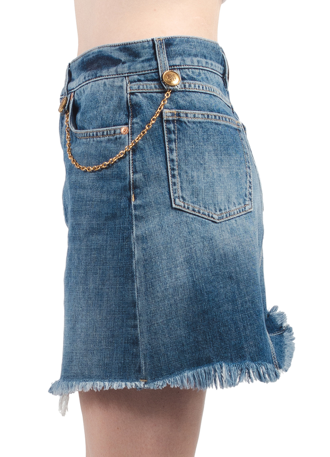 - Спідниця коротка джинсова з золотим ланцюжком.