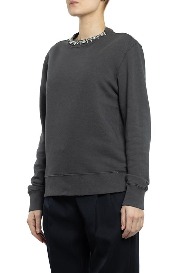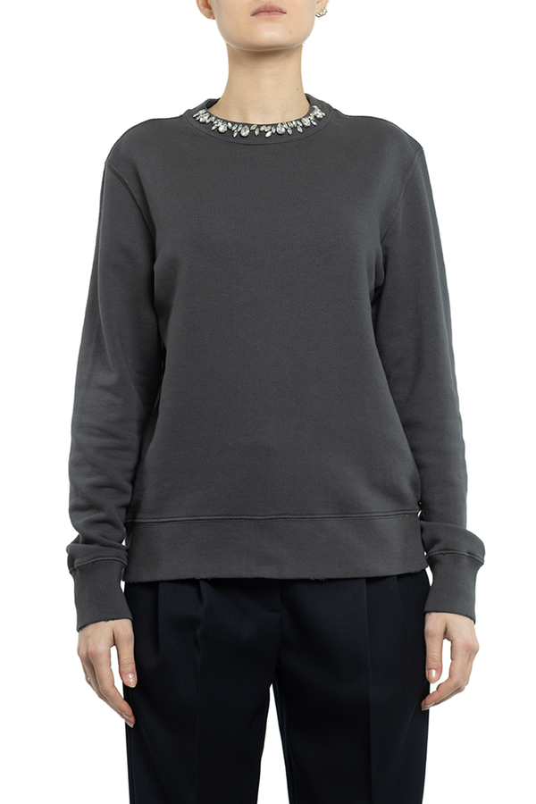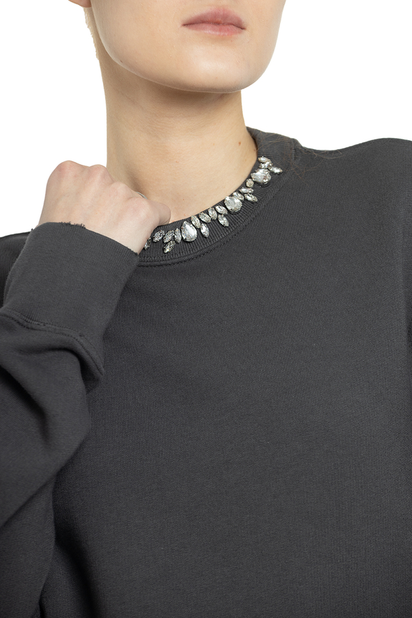 - Світшот з довгими рукавами, круглий виріз горловини, оздоблений кристалами, фірмова подвійна зірка на спині