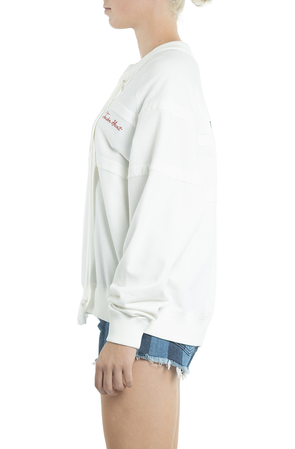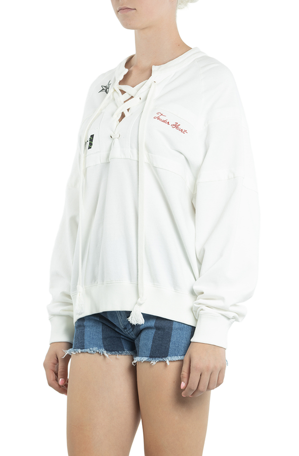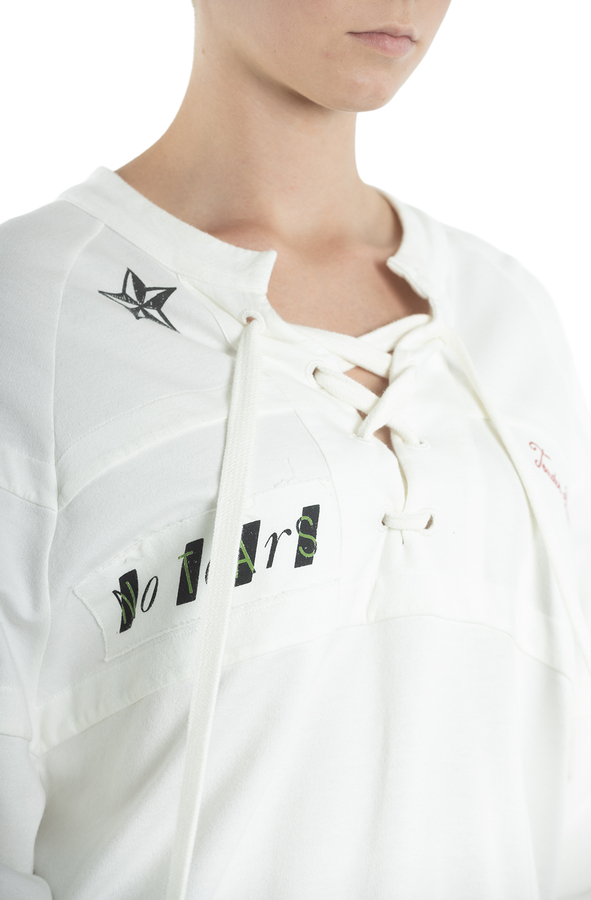 - Бавовняний світшот прикрашений шнурком і написами з зірками.