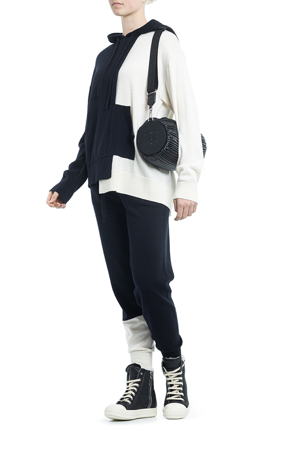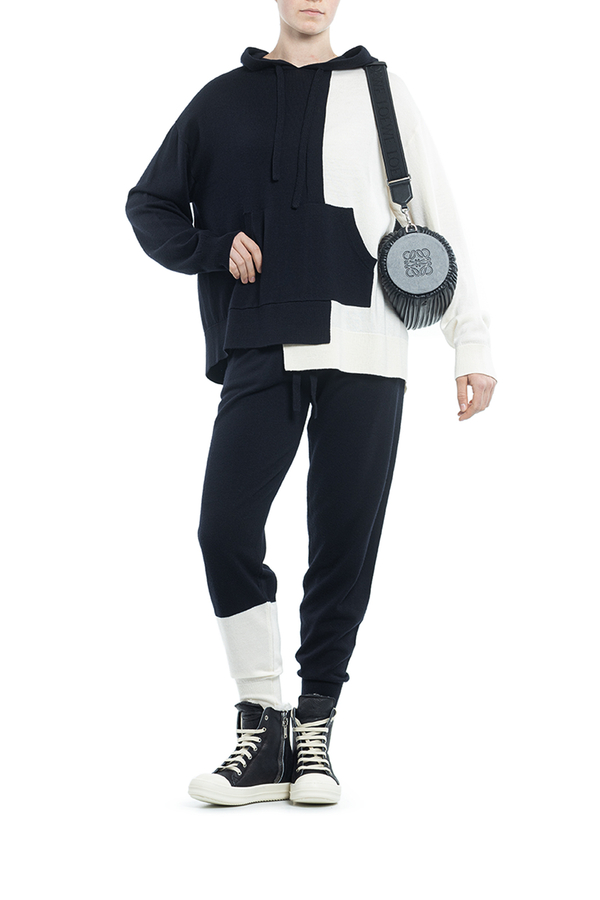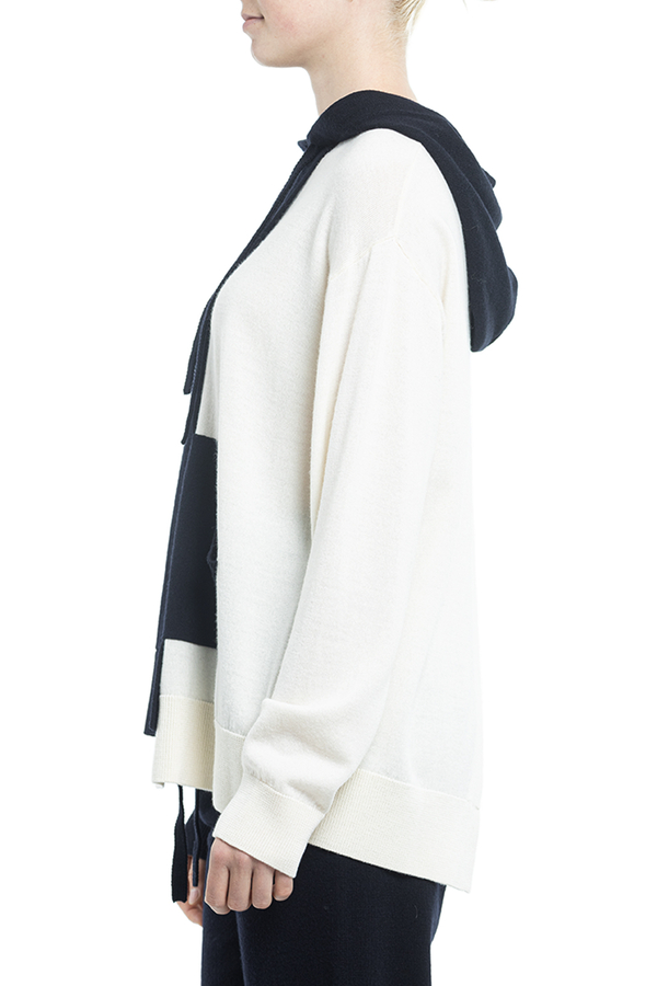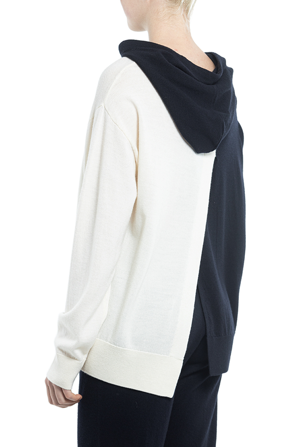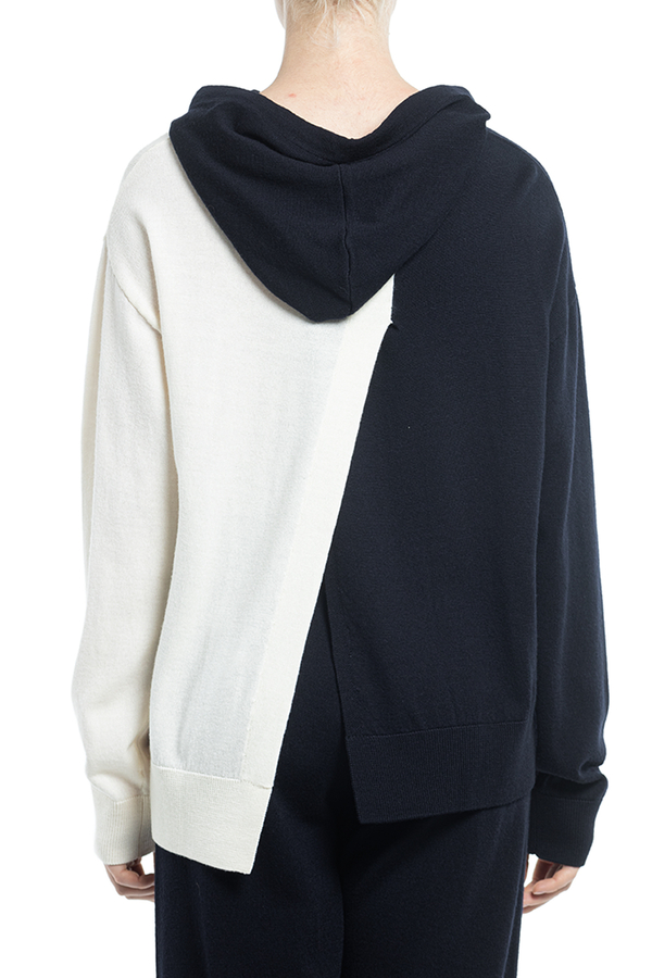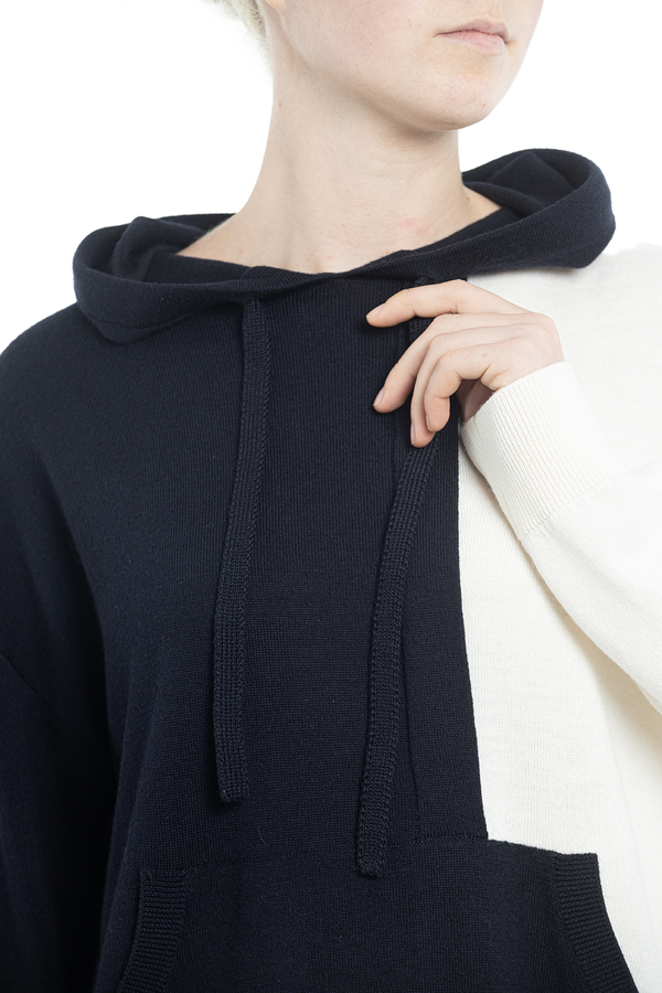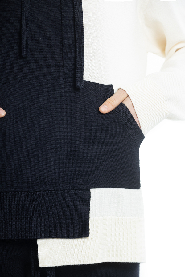 - Трикотажне худі асиметричного крою, стиль колор-блок, довгий рукав, приспущені плечі, кишеня-кенгуру