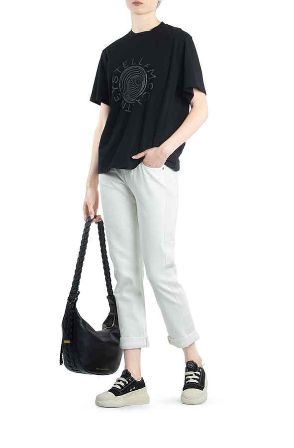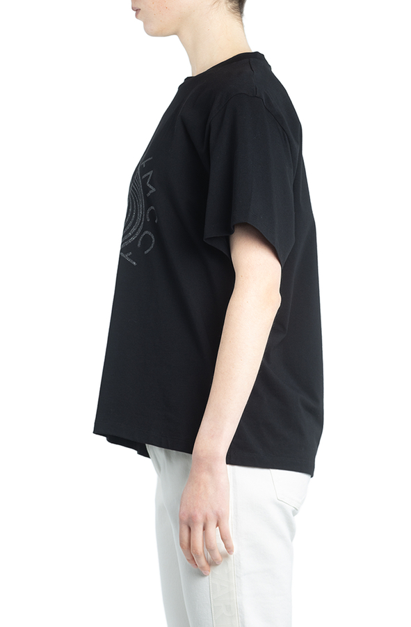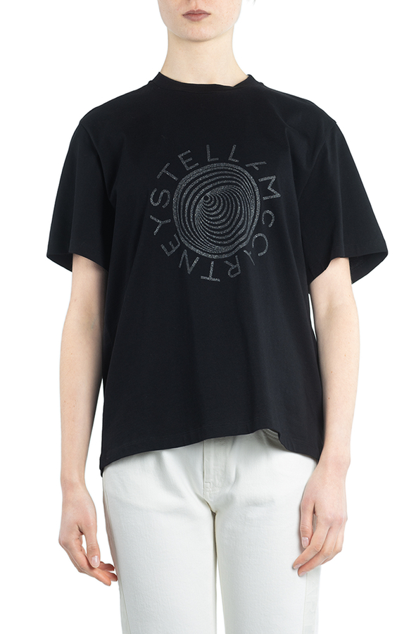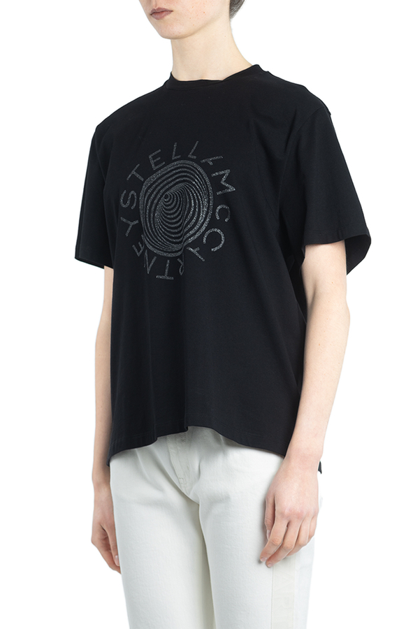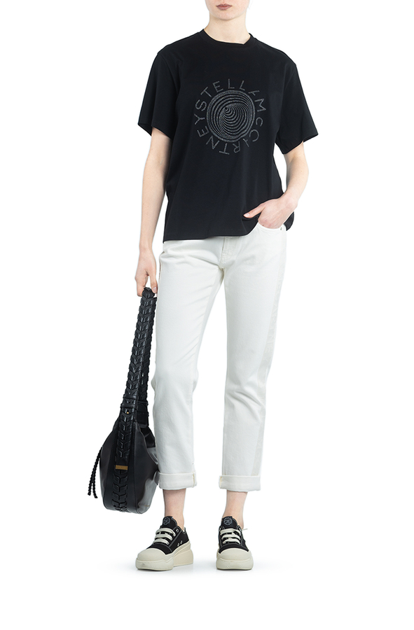 - Бавовняна футболка з коротким рукавом. На грудях принт-накатка з блискітками.