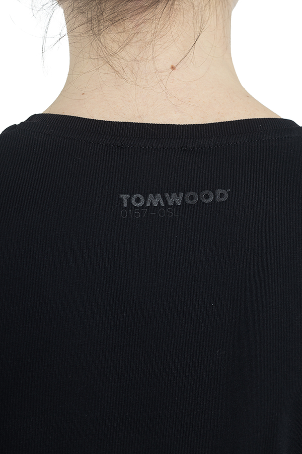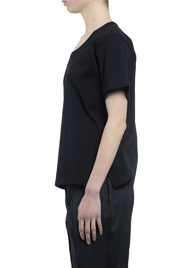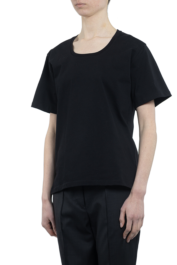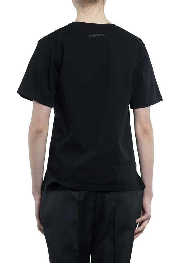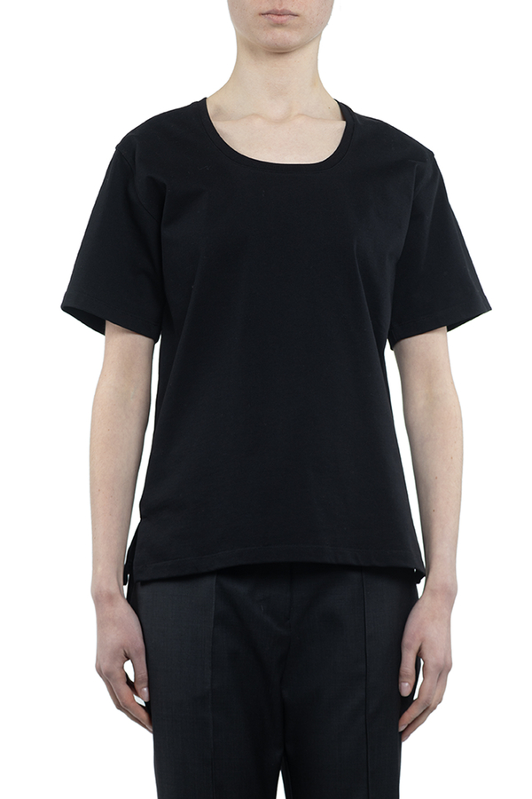 - Бавовняна футболка з короткими рукавами і розрізами з боків.