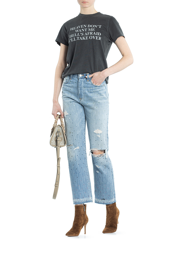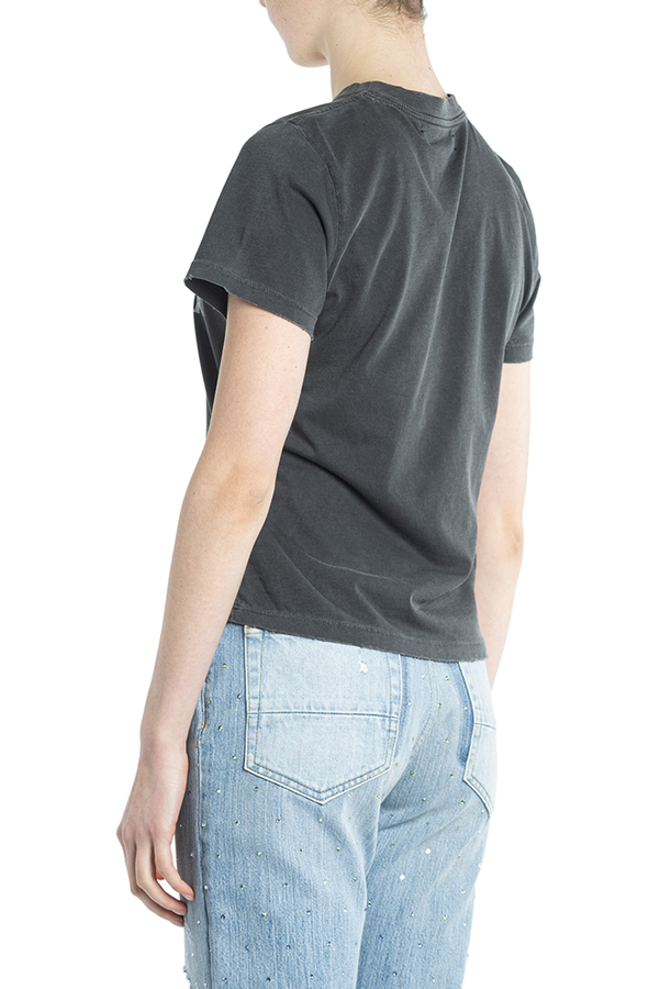 - Бавовняна футболка з короткими рукавами, круглим вирізом горла і графічним написом спереду.