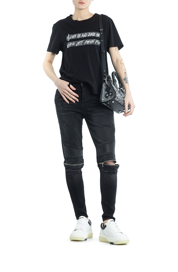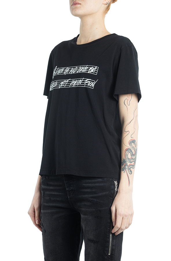- Бавовняна футболка з короткими рукавами з принтом нот і написів.