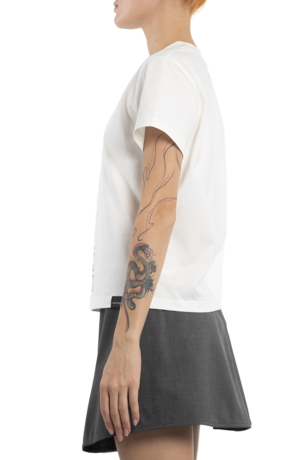 - Футболка з короткими рукавами, круглий виріз, вишитий логотип спереду, принт з логотипом спереду та ззаду