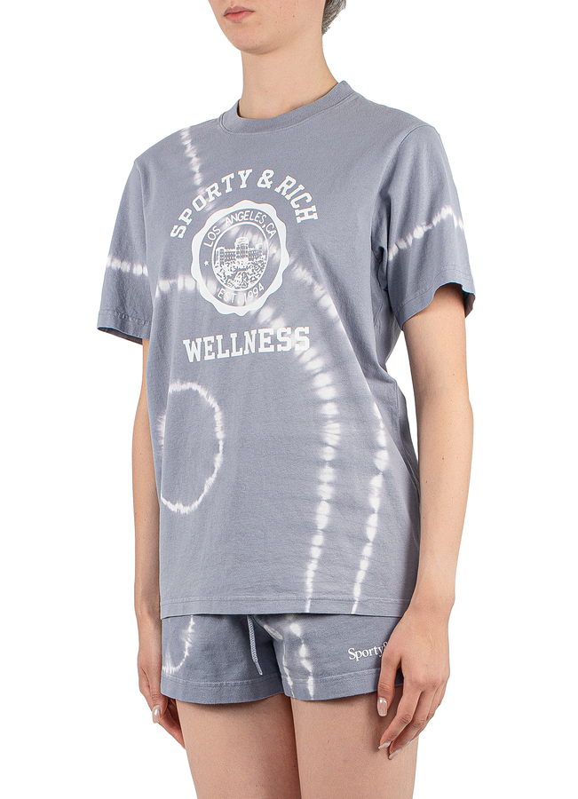 - Футболка с короткими рукавами, принт тай-дай, круглый вырез горловины, спереди принт логотипа