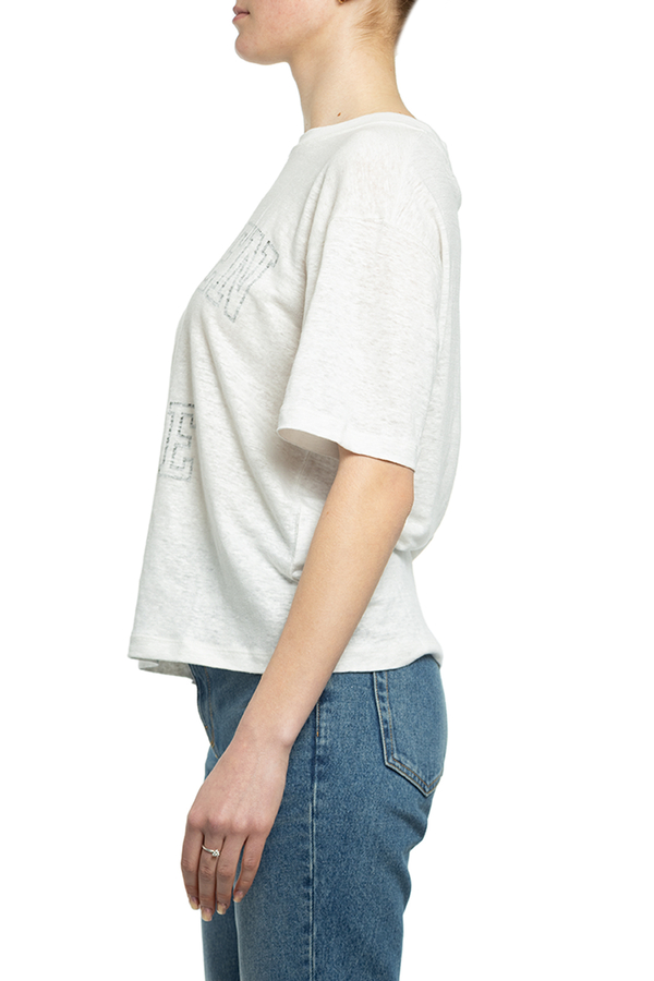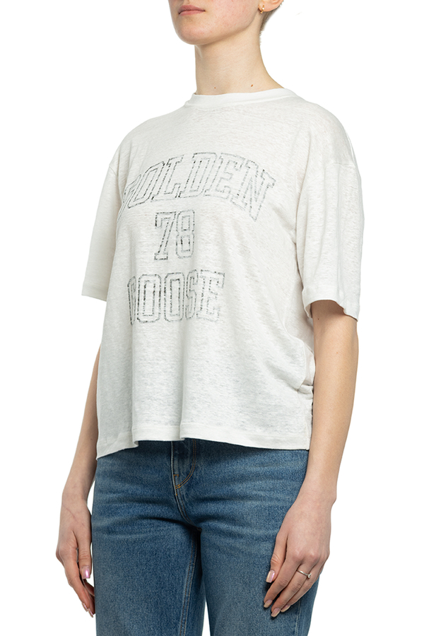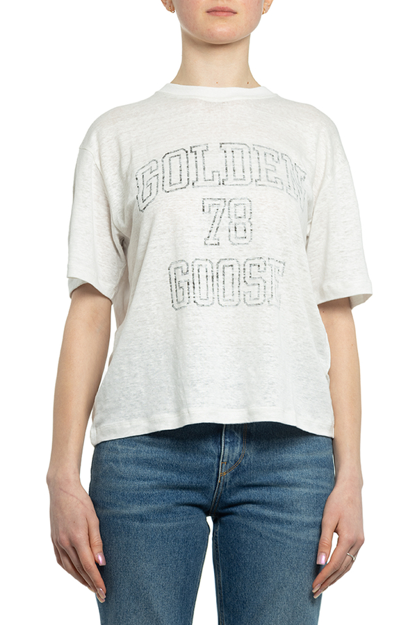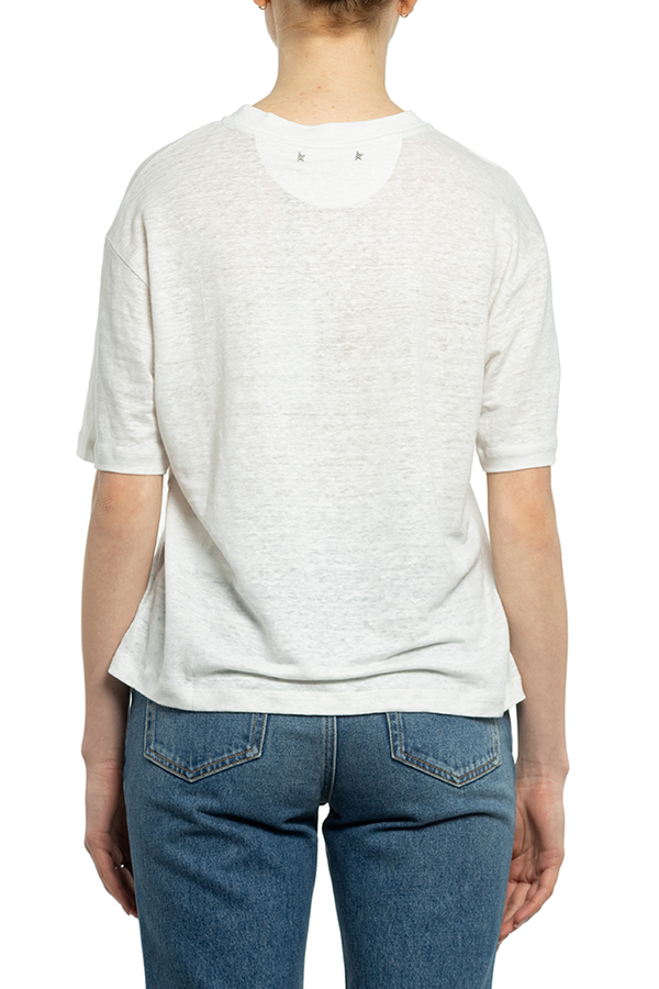 - Футболка з короткими рукавами, круглий виріз горловини, принт спереду, подвійна золота зірка на спині