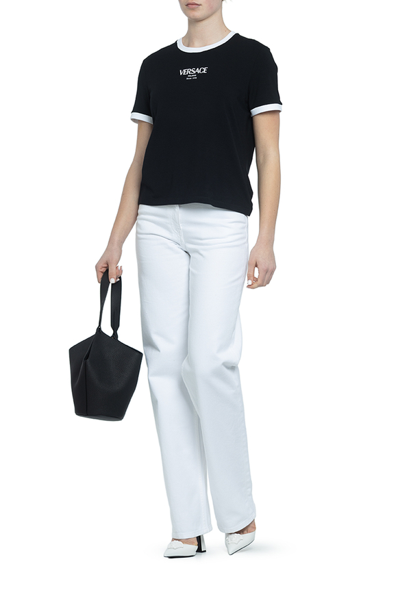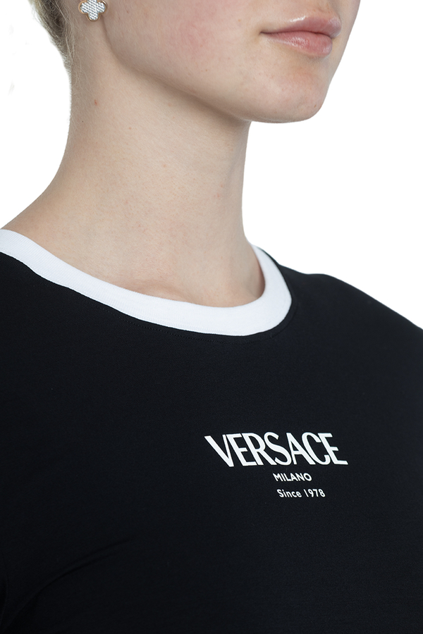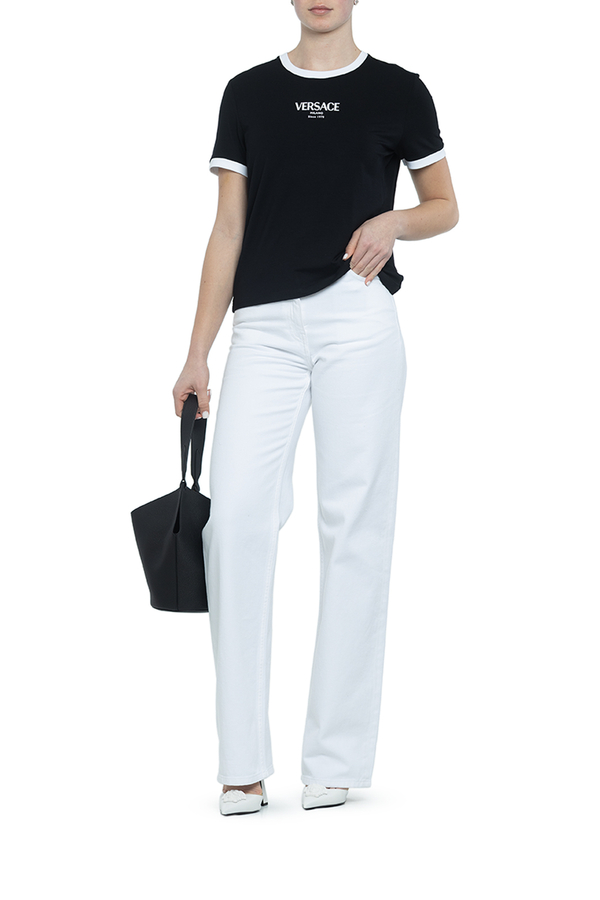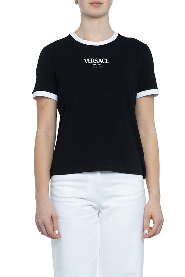 - Футболка с короткими рукавами, круглый вырез горловины, контрастные вставки на рукавах и горловине, логотип Versace на груди