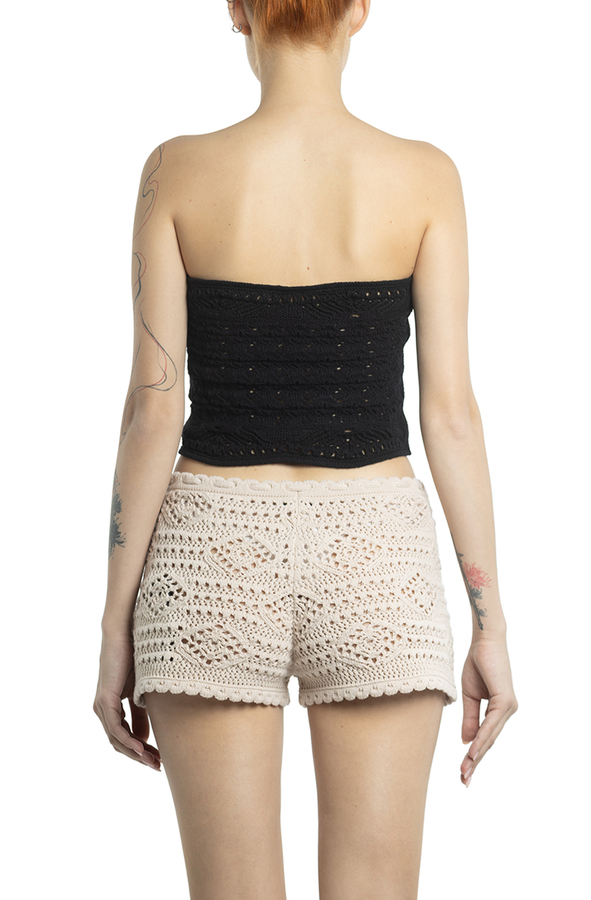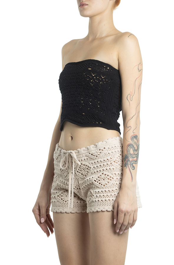 - Плетений ажурний топ без рукавів та короткий дизайн.