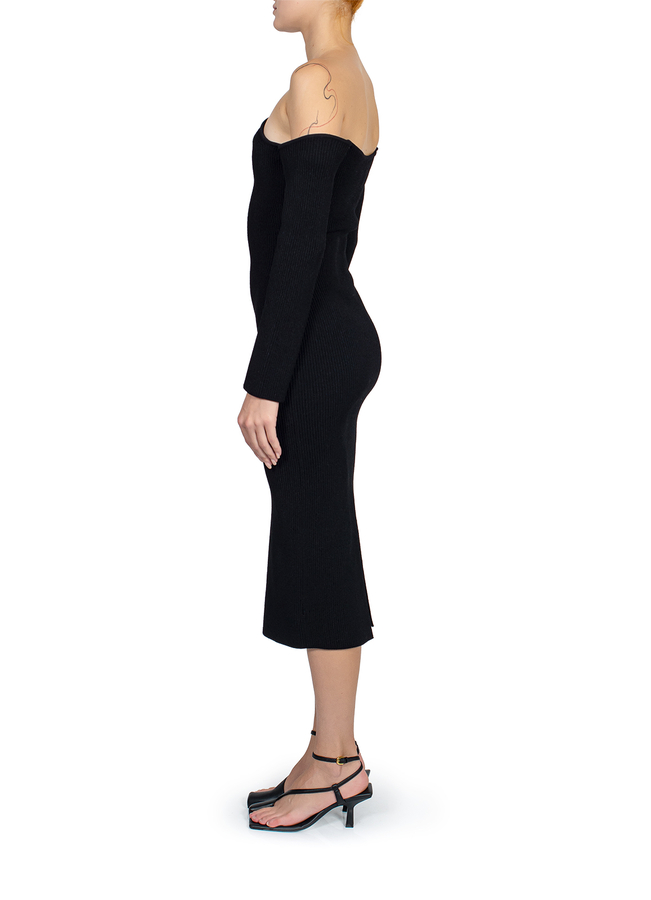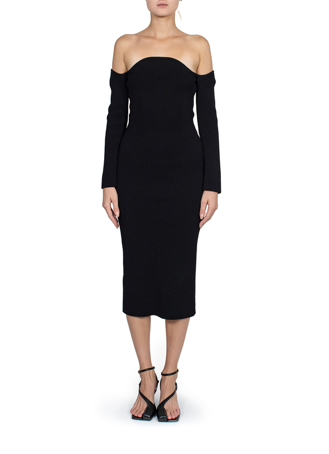 - Сукня Matilda з відкритими плечима та фестонами. Довжина рукава три четверті, з розрізом ззаду.