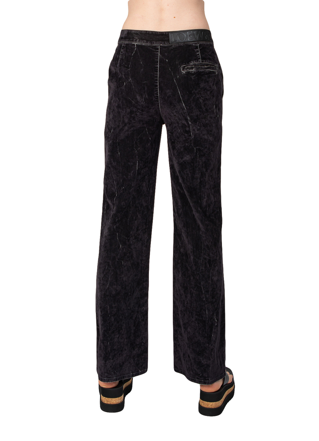 - Джинсы Loewe со средней посадкой, спереди скрытая застежка-молния, два прорезных кармана по бокам и один сзади, кожаная вставка с тиснением LOEWE сзади