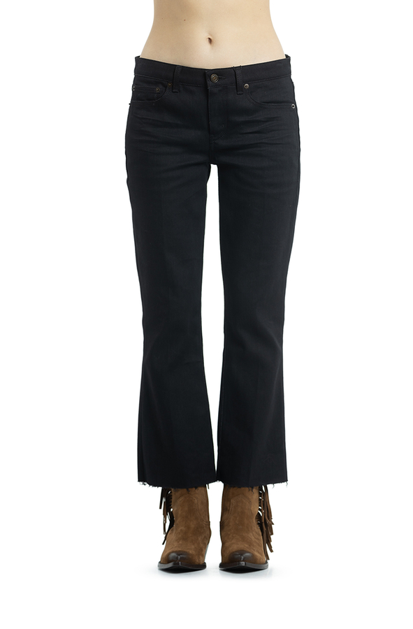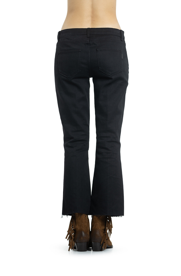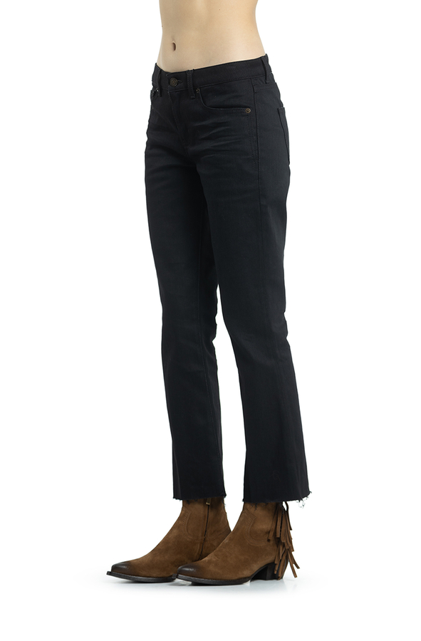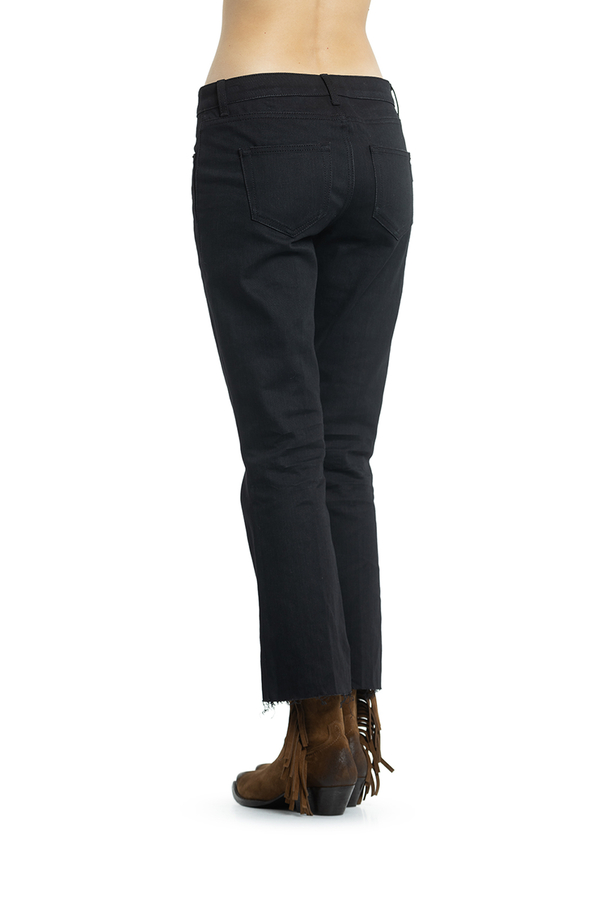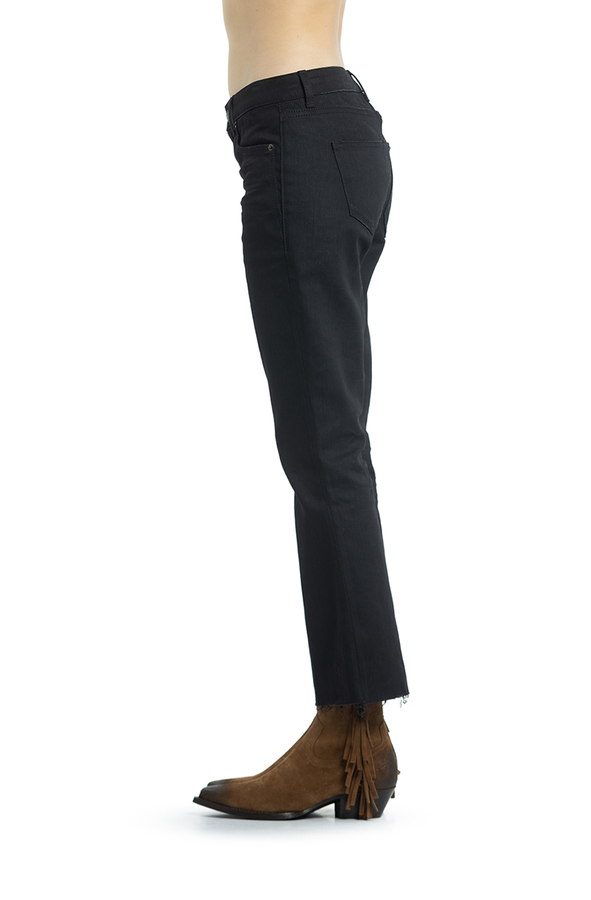 - Джинси прямого крою. Застібка на гудзик і блискавку. Необроблений низ, укорочена довжина.