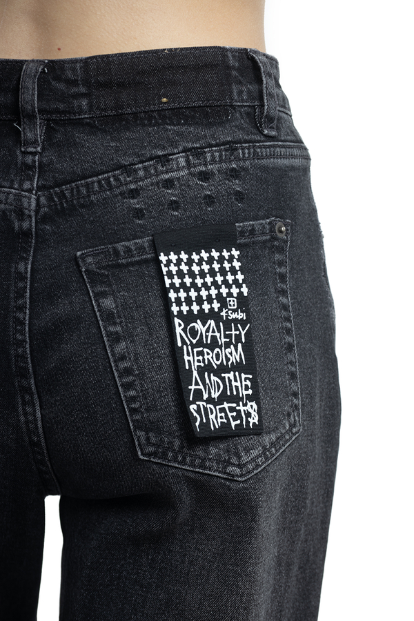 - Джинсы Ksubi з потертостями і заломами. Укорочена модель з посадкою на талії.
