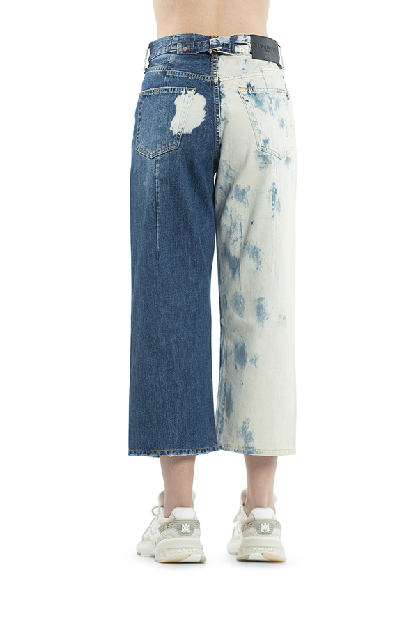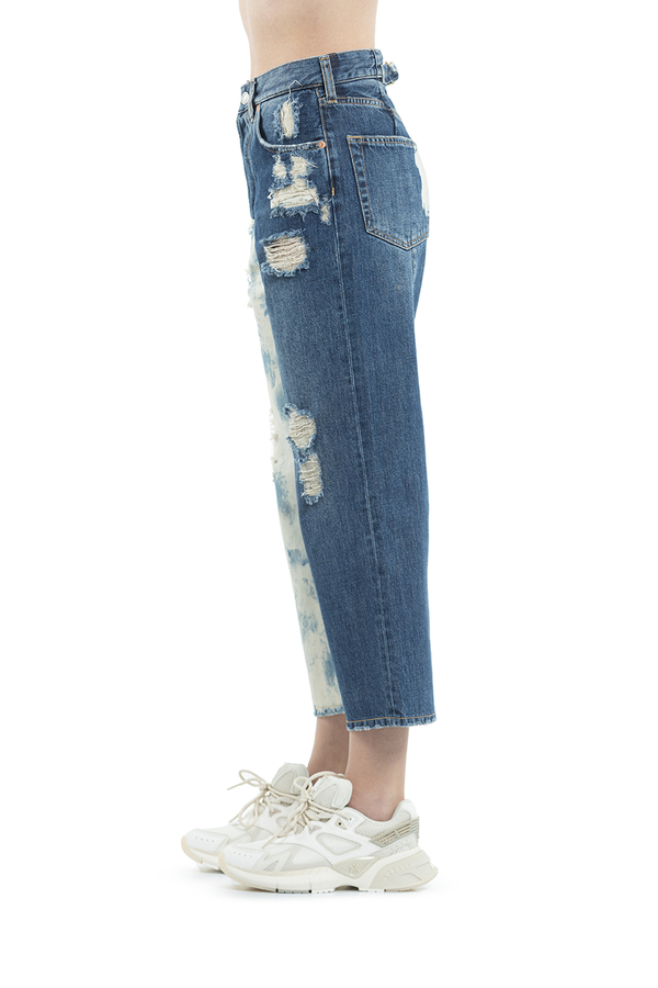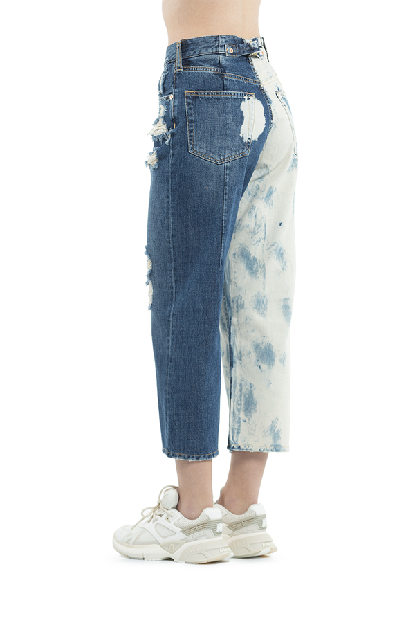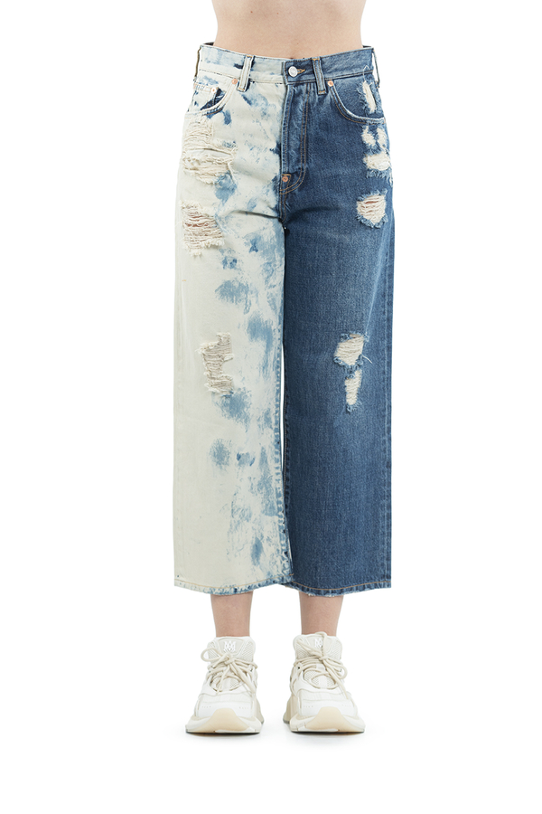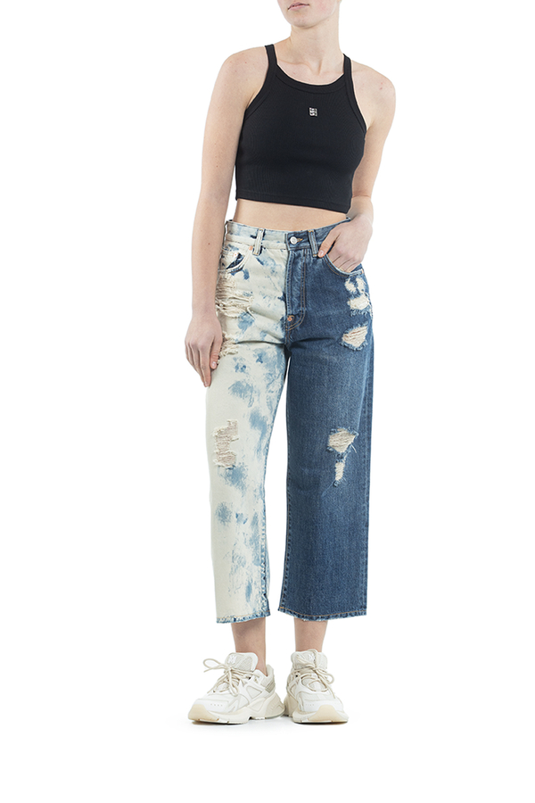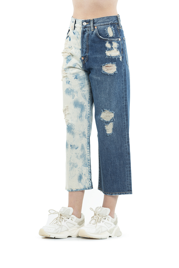 - Двокольорові джинси, укорочені рвані