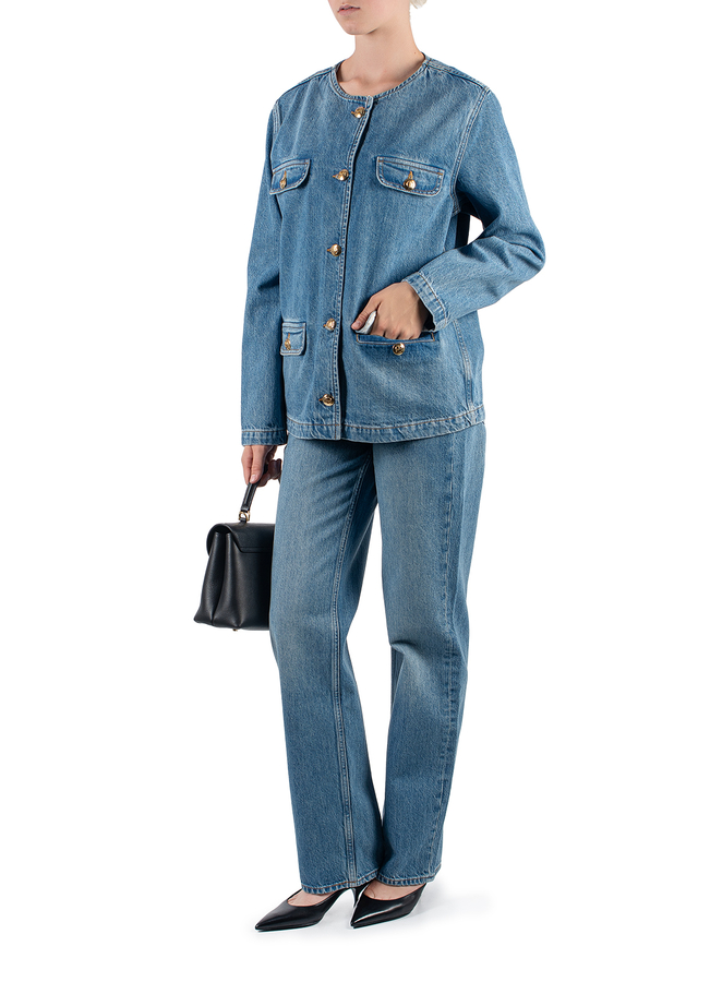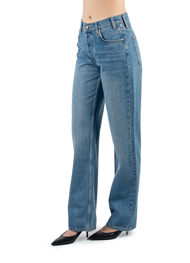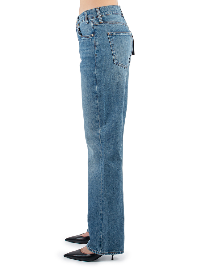 - Джинси з класичними п’ятьма кишенями, шлевки для ременя, застібка на блискавку та гудзик, ззаду нашивка з логотипом
