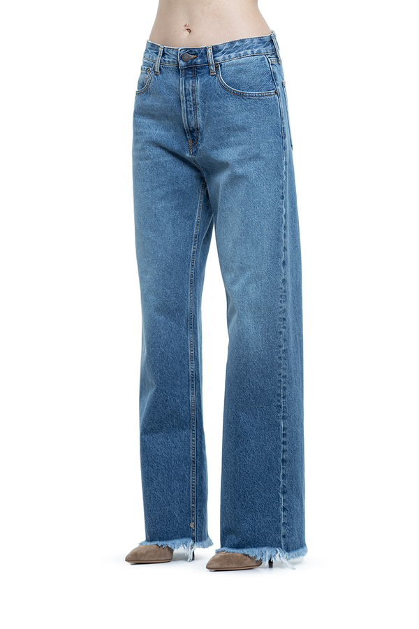 - Джинси з класичними п’ятьма кишенями, шлевки для ременя, контрастна етикетка з логотипом позаду