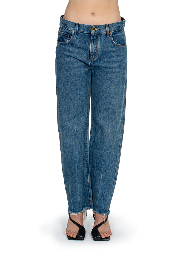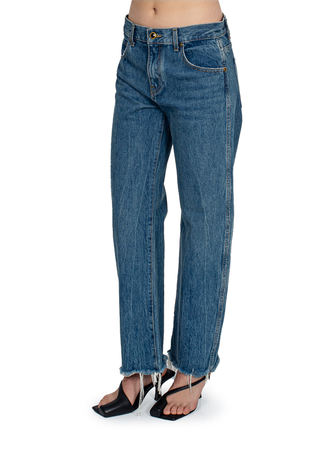 - Джинси прямі, не оброблений низ, прорізні кишенні с боків, дві накладні кишені сзаду.