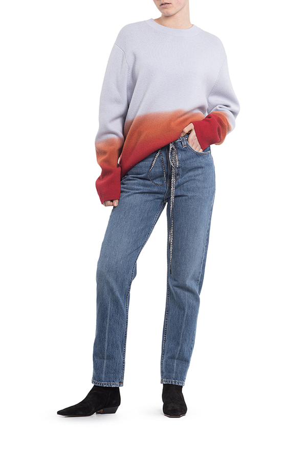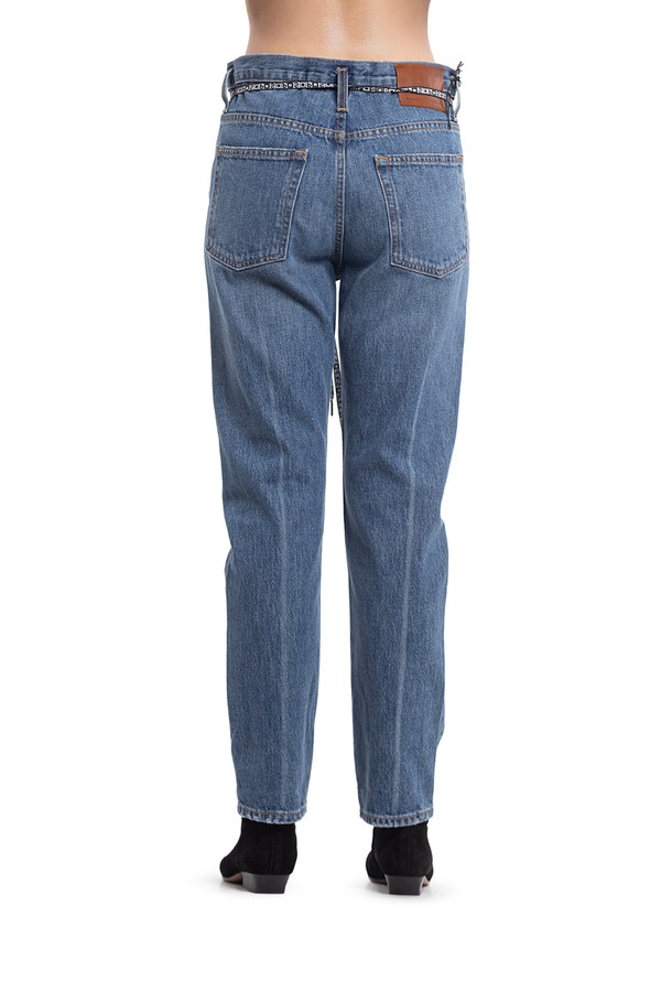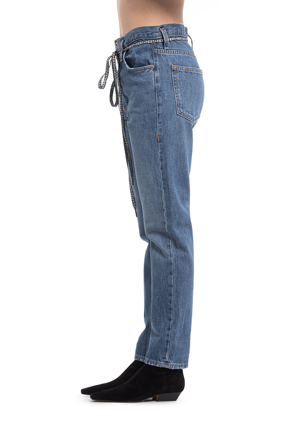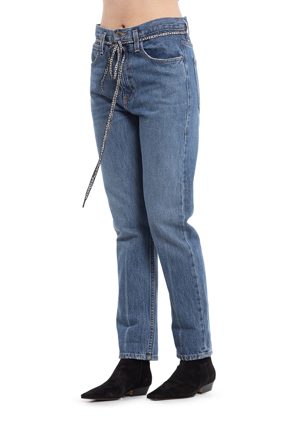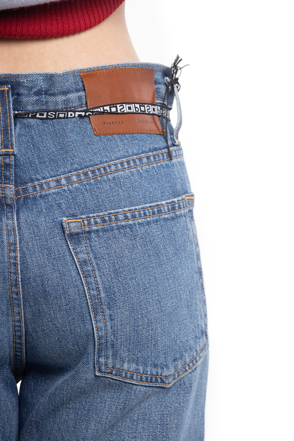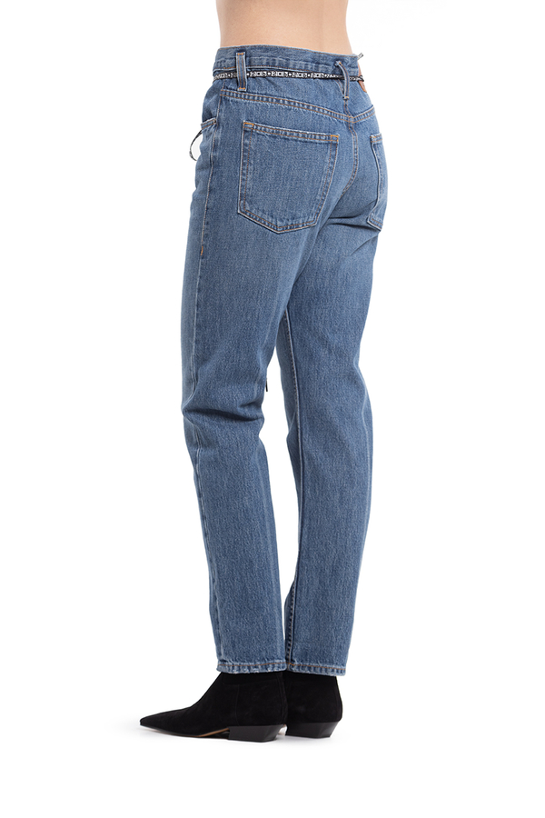 - Прямі джинси із заниженою лінією кроку. З куліскою на талії.
