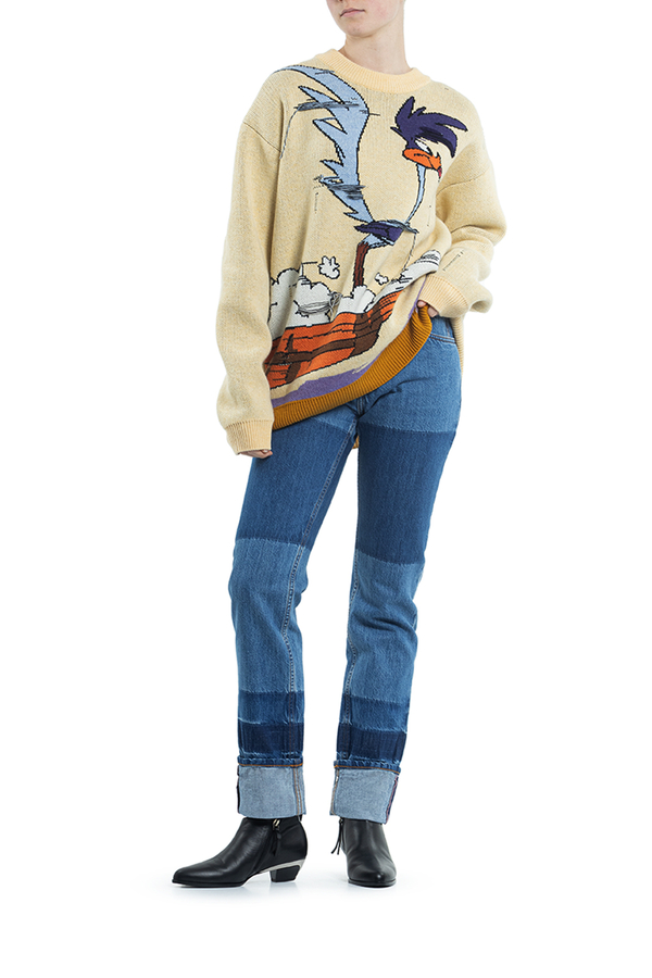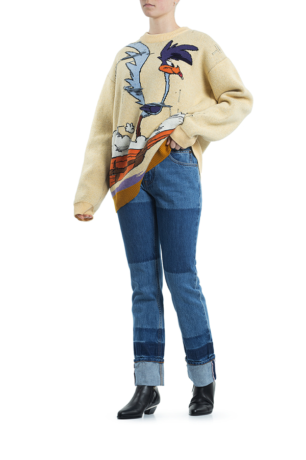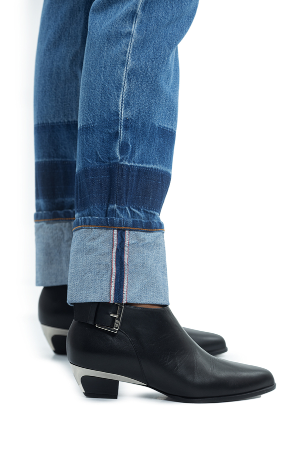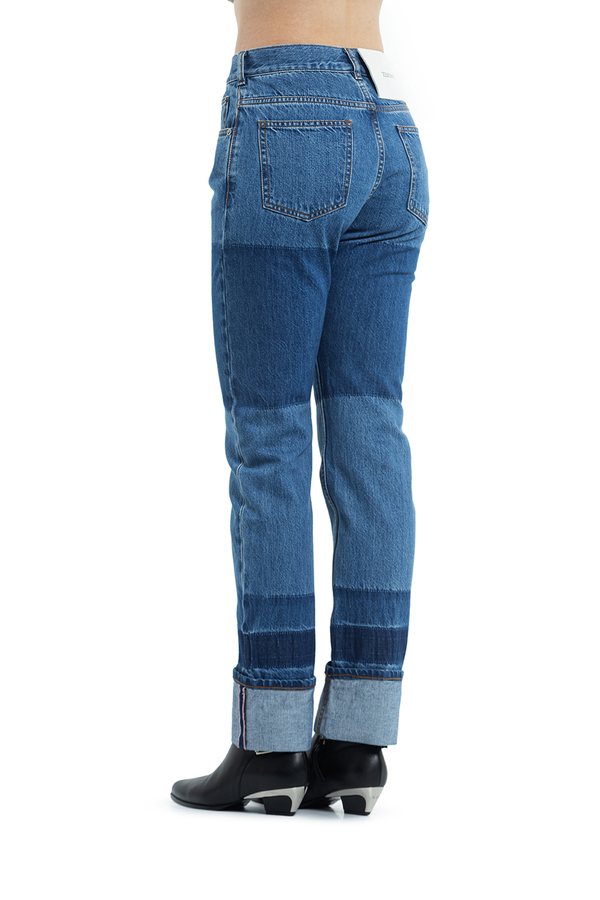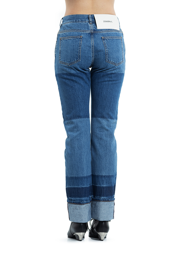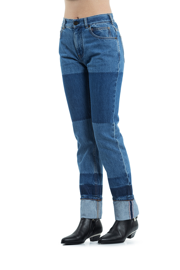- Джинси прямого крою з отворотами. З аплікацією біло-червоної стрічки по низу з світловідбиваючим ефектом.