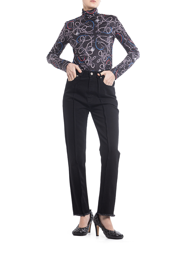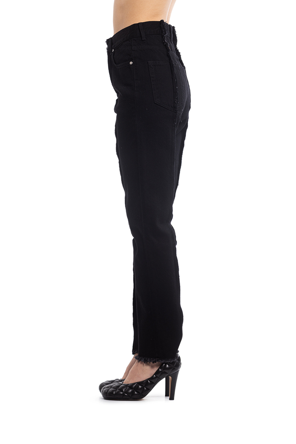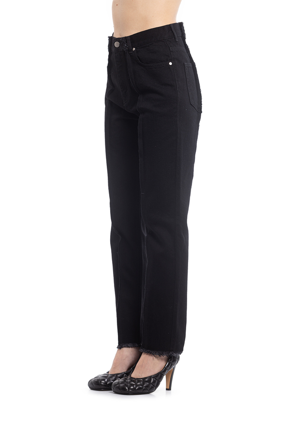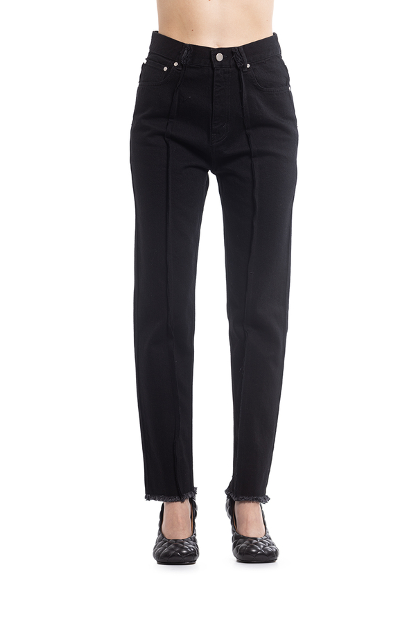 - Джинси прямого крою з необробленими швами.