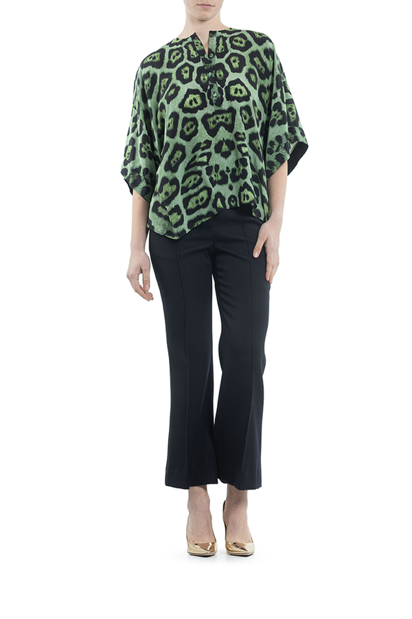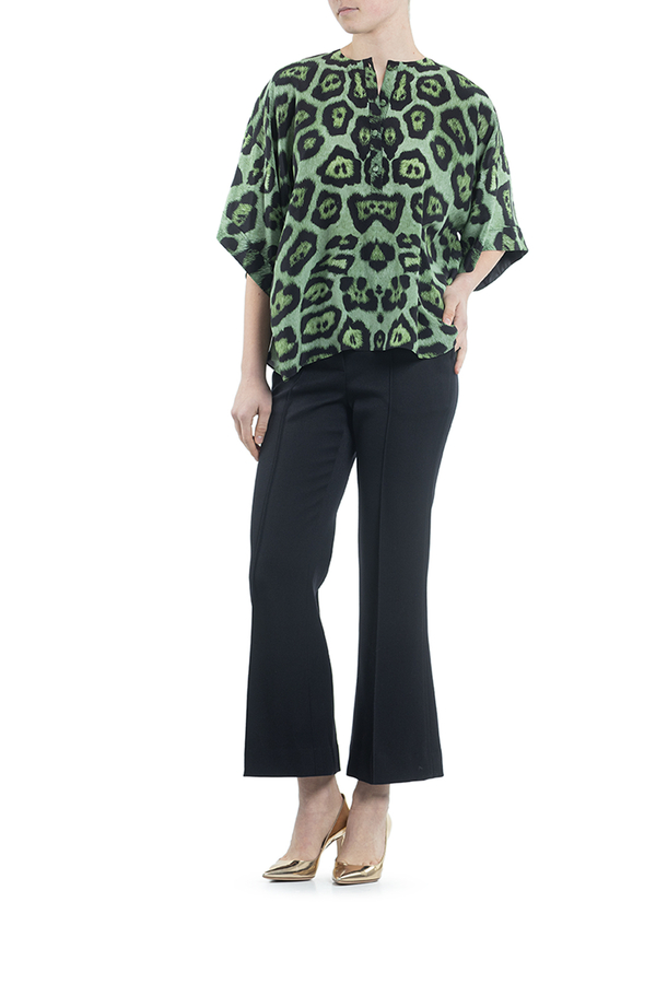 - Розкльошені короткі брюки с високою талією. Застібка на блискавку і гудзик. петлі для ременя.