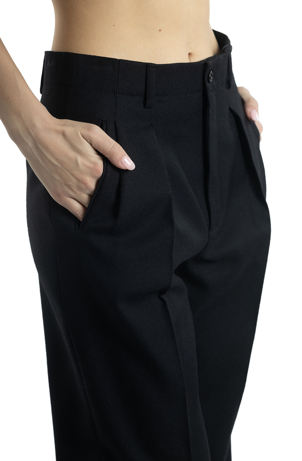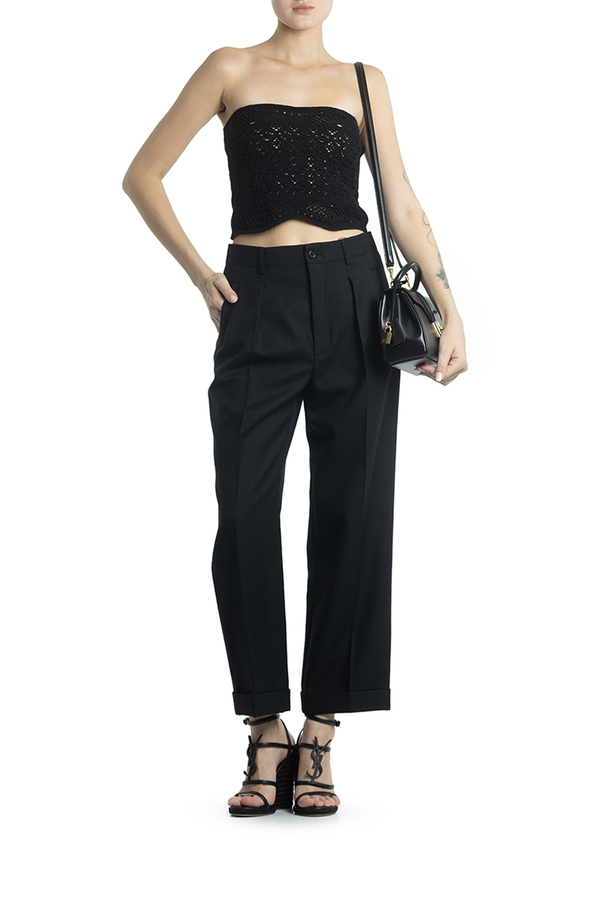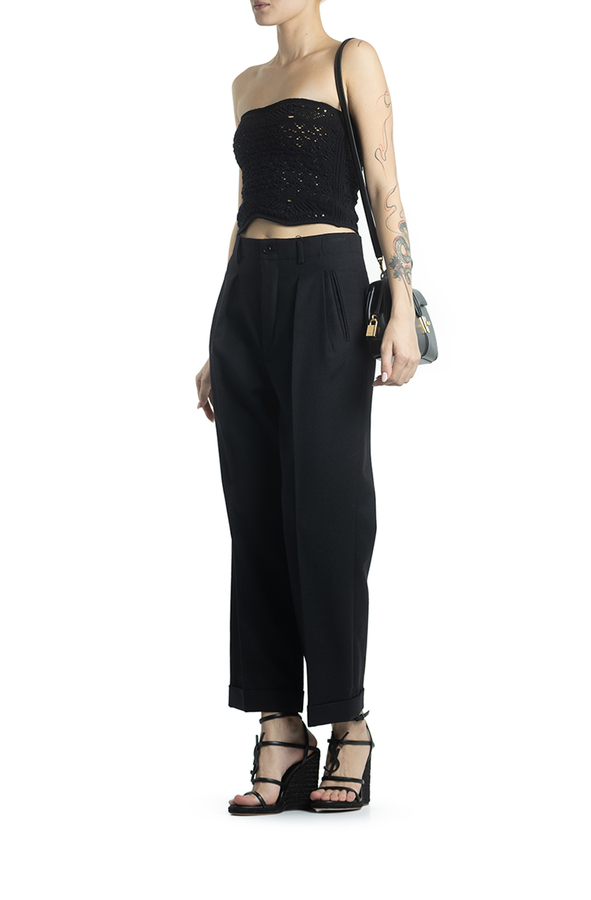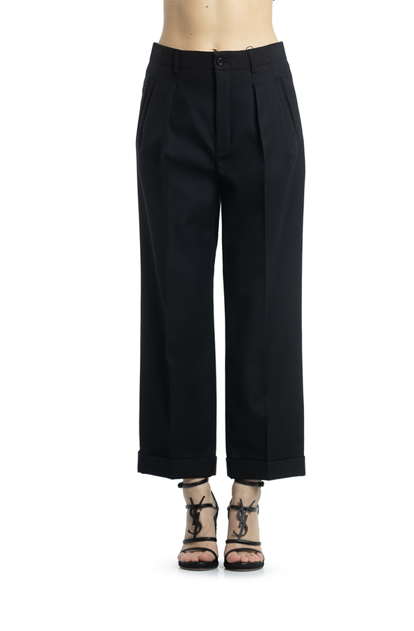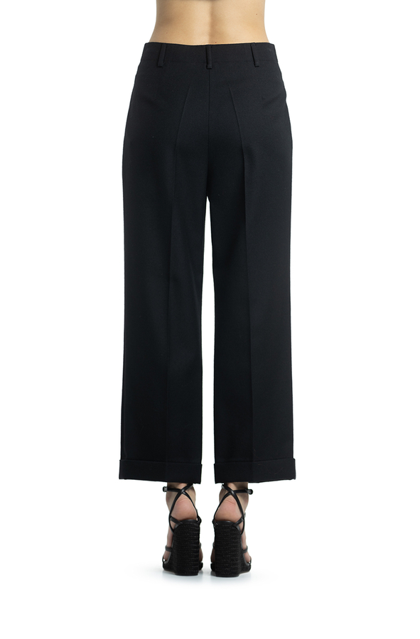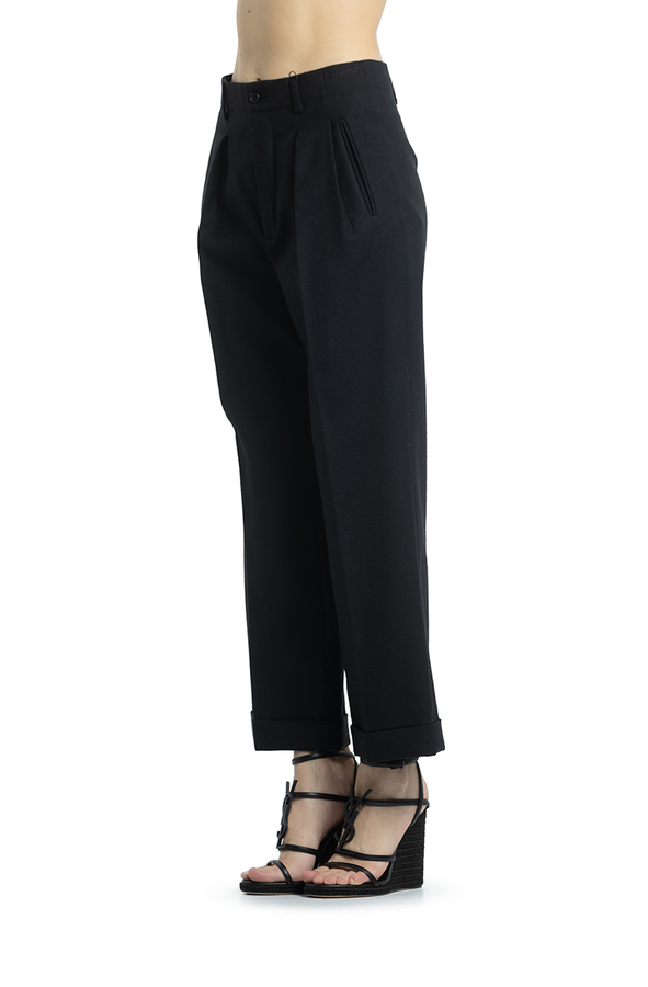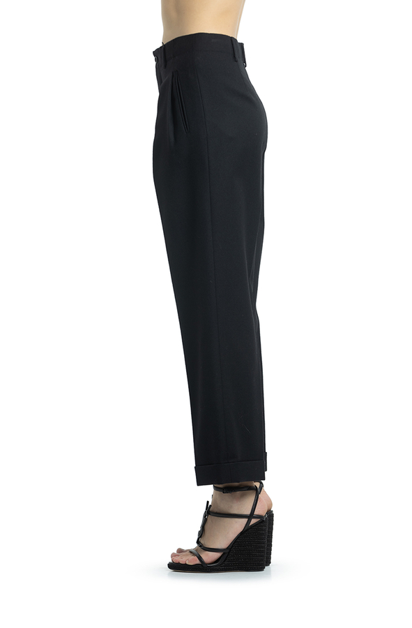 - Вовняні брюки з високою талією, з отворотами на манжетах.