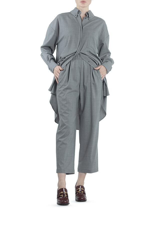 - Прямі вовняні штани укороченої довжини з високою талією. Дві бічні кишені, еластичний пояс.