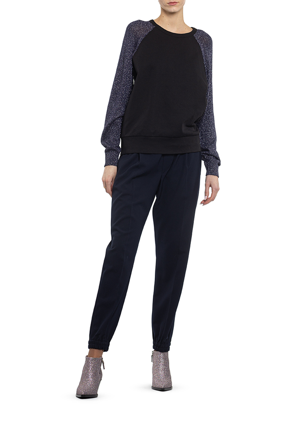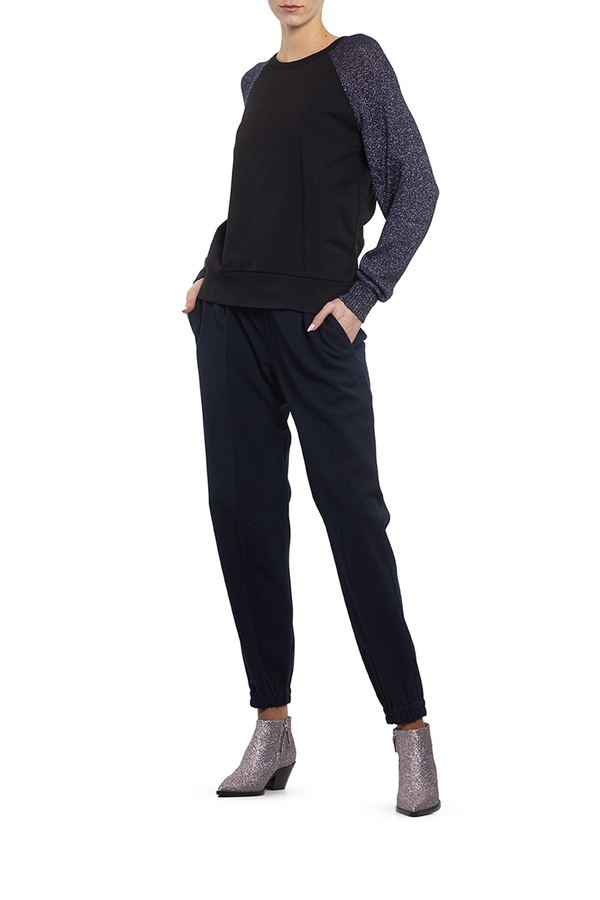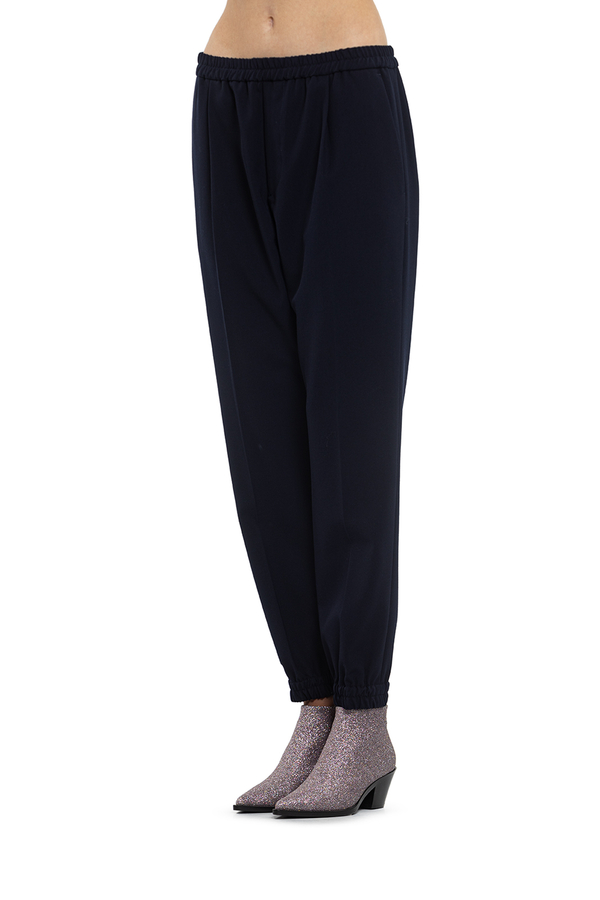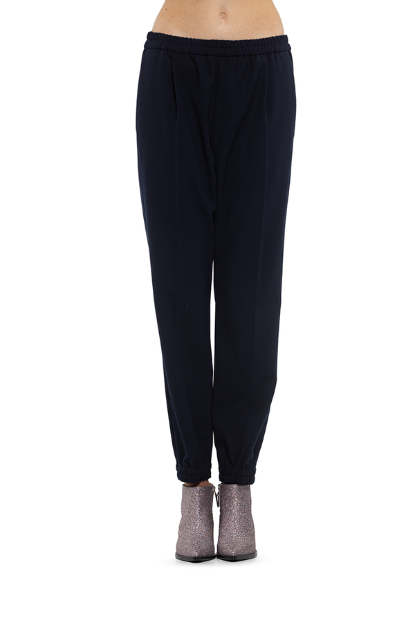 - Штани прямого крою з манжетами знизу. Дві бічні кишені, пояс на еластичній манжеті з куліскою.