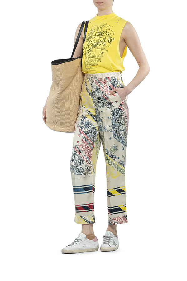 - Жакардові штани з принтом пейслі і рослинним візерунком.