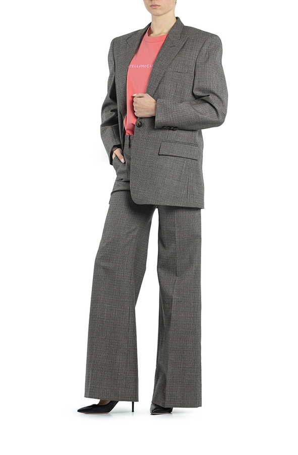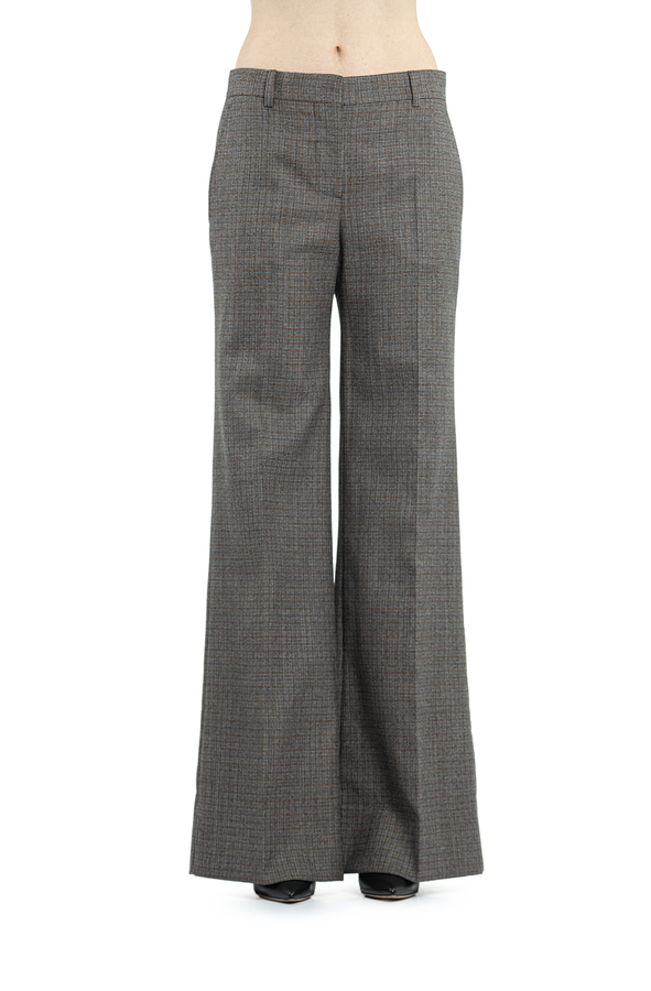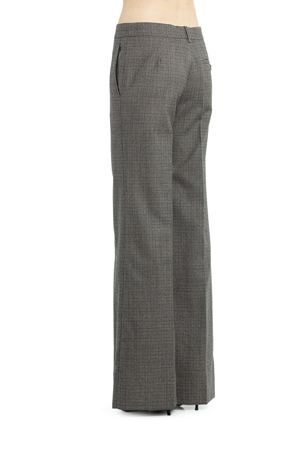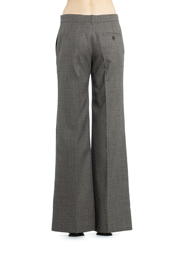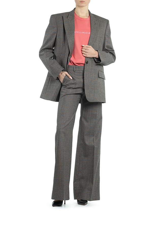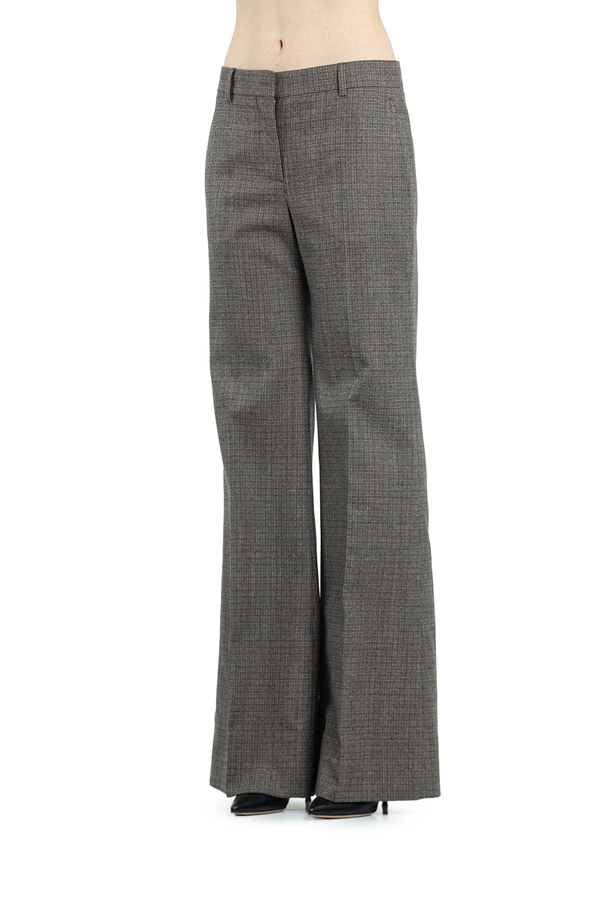 - Прямые брюки, принт гусиная лапка, петли для ремня, скрытая застежка спереди, два боковых прорезных кармана, сзади карман на пуговице