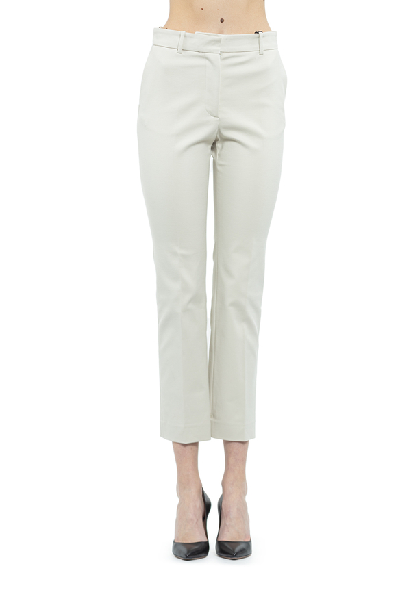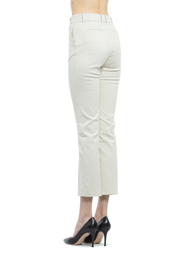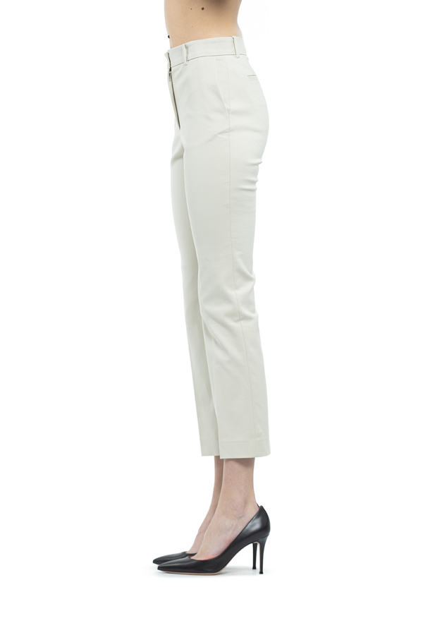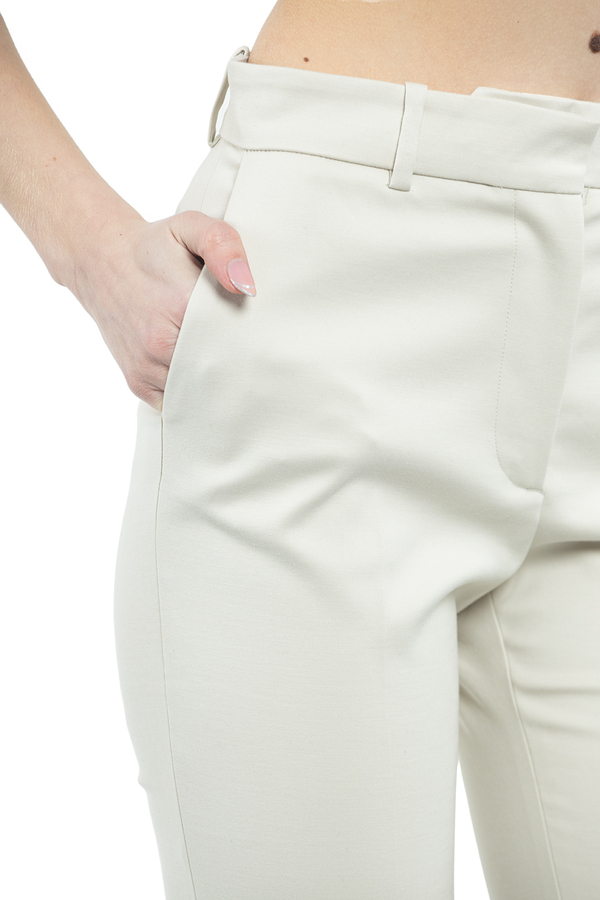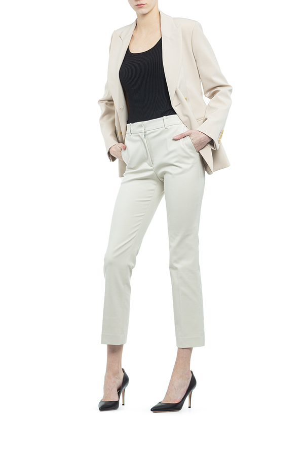 - Штани прямі укорочені, пояс з петлями для ременя, потайна застібка спереду, прорізні кишені по бокам